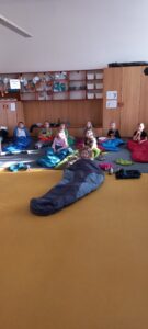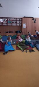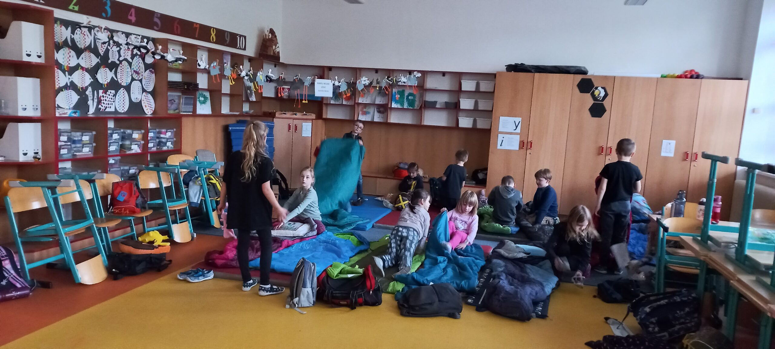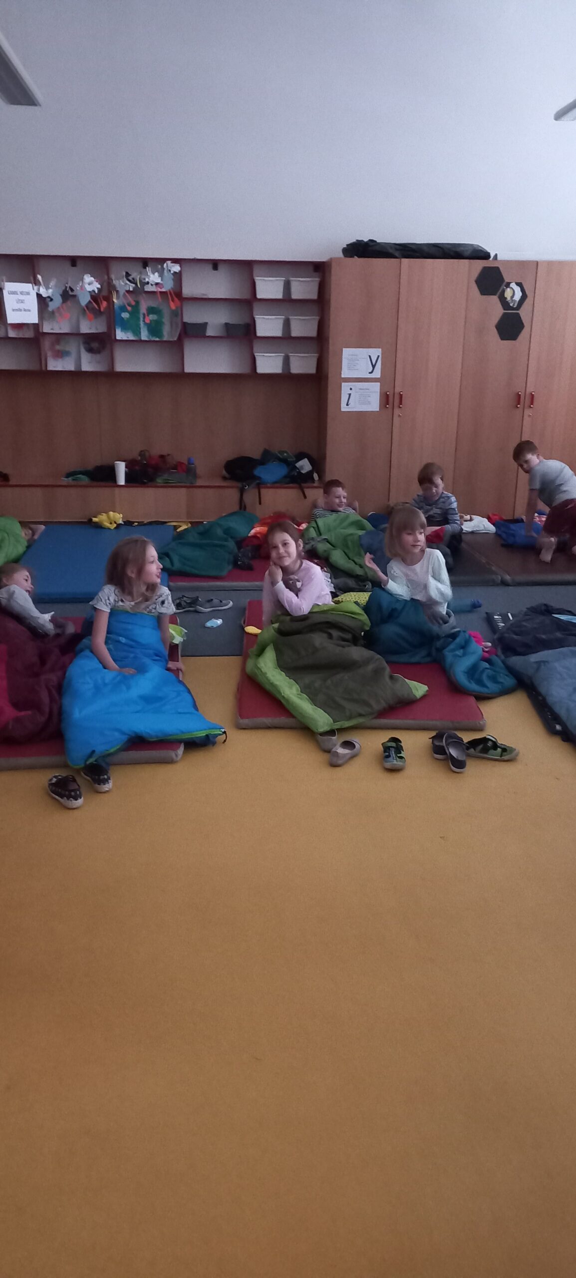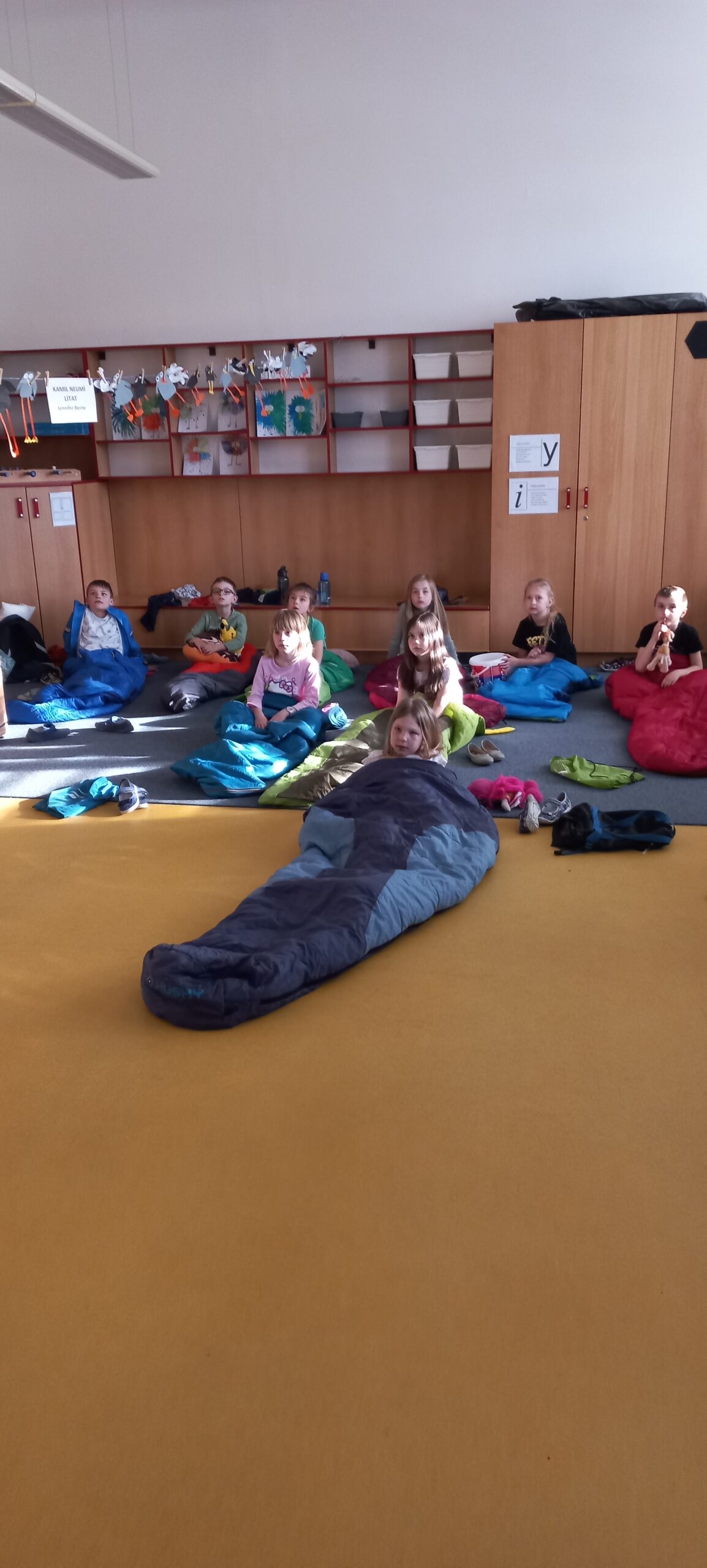 Tento měsíc jsme s dětmi z II. tř. absolvovali spaní ve škole. Nejdříve jsme si zahráli různé hry na hřišti naší školy, počasí nám přálo, a tak jsme trochu nevěděli kdy skončit. Po té co si děti připravily své místo na spaní, čekala je pohádka. Nesměl chybět ani oblíbený popkorn, který jistě leckdo našel ve svém spacáku ještě ráno. Snídaně byla jako ve čtyřhvězdičkovém hotelu a za to vděčíme mamkám, které nám napekly. Děkujeme. Vzhledem k tomu, že to všichni zvládli, moc jsme si to užili. Tak zase někdy příště….