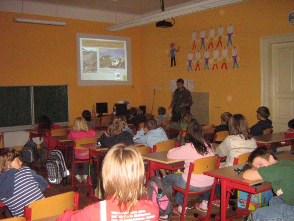 Každá třída také navštívila dvouhodinovou prezentaci pana Ing. Bílka z KRNAPu, který k nám přijel z Vrchlabí. Přednáška byla (pro většinu) zajímavá — vznikem Krkonoš počínaje, květenou a zvířenou konče. Byly tu nastíněny i některé problémy, se kterými se nyní správa parku potýká. Našemu hostu velmi děkujeme.