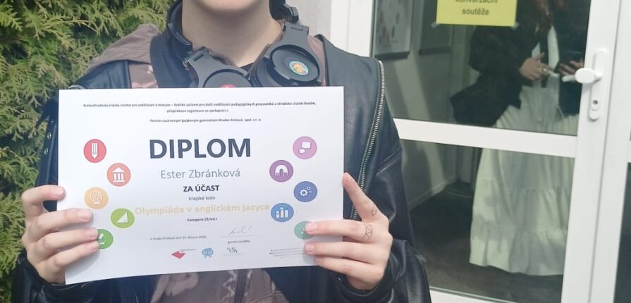 Velkého úspěchu dosáhla žákyně Montessori školy Ester Zbránková (7.M), která se v krajském kole Anglické konverzační soutěže (kategorie ZŠ/VG I) umístila na výborném 4. místě v rámci Královéhradeckého kraje. Na medailové umístění jí přitom chyběl pouhý jeden bod.