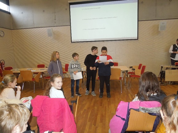 Ještě před vánočními prázdninami se 5.B vypravila na exkurzi do královehradecké studijní knihovny. Děti zde pracovaly s texty H. Ch. Andersena, A. Lindgren či R. Kiplinga. Nejen že si páťáci připomněli nejznámější díla dětské světové literatury, ale prostřednictvím skupinových prací se dozvěděli cenné informace i o samotných autorech a rovněž se seznámili se zeměmi, ve kterých spisovatelé strávili svůj život.