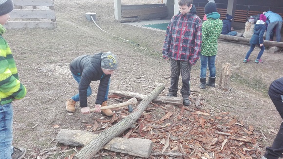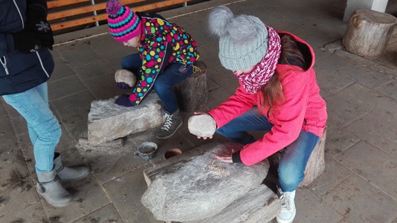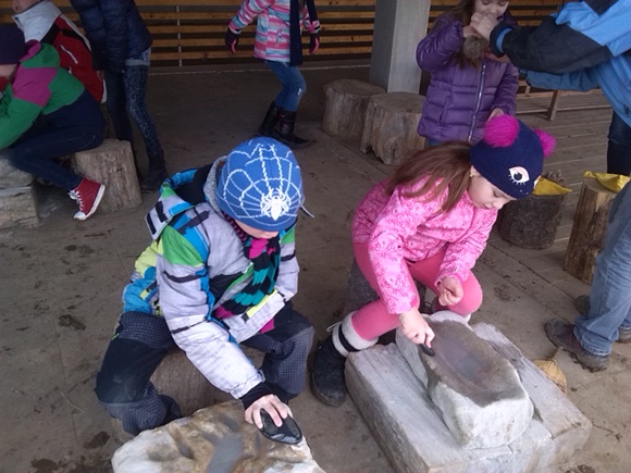 Jak se žilo v pravěku a co vše museli umět a znát první lidé si vyzkoušeli žáci třetího ročníku. Žáci se seznámili s historií doby kamenné. Dále si vyzkoušeli, jak se dříve pracovalo v osadách, opracovávali kůži ze zvířete a také ochutnali placky připravované přímo na kameni.