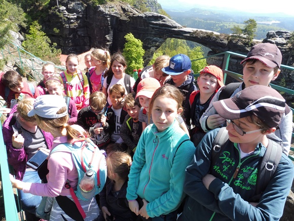 Ve čtvrtek 11. 5. 2017 se žáci páté třídy vypravili do Českého Švýcarska. Počasí bylo slunečné. Cestou na Pravčickou bránu jsme obdivovali pískovce a četli zastavení. Z vyhlídek u Pravčické brány se nám naskytl nádherný pohled na České i Saské Švýcarsko. Druhou cestou jsme sešli zpět na silnici na Mezní Louku, odkud jsme pokračovali po chodníku až do Hřenska. Pak nás čekala plavba na lodičkách – Edmundova soutěska zakončená umělým vodopádem na provázek. Žáci si koupili suvenýry a vydali jsme se na cestu k autobusu. Po zdolání velkého počtu schodů na nás v Mezné čekal autobus. A my se vydali zpět do Hořic.