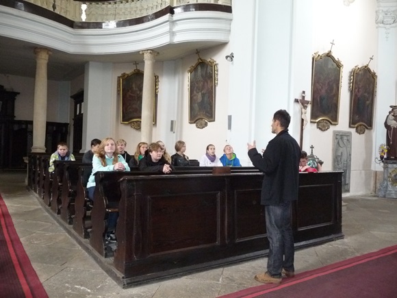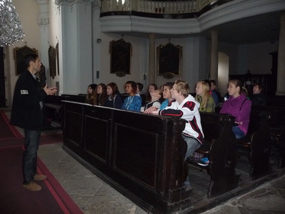V minulých dnech jsme se společně s žáky 8. tříd zúčastnili poutavé exurze v hořickém kostele v rámci projektu o baroku. Průvodce nám dělal pan Pavel Bičišťě. Většina žáků byla v kostele poprvé ve svém životě a tak si s úžasem prohlíželi interiér kostela a dozvídali se různé zajímavosti. Se žáky jsme také vystoupali na kůr, aby si mohli poslechnout a prohlédnout kostelní varhany. Společně jsme si zazpívali, abychom se přesvědčili o velmi dobré akustice barokního kostela a vyšplhali jsme se točitým schodištěm nad klenbu kostela.