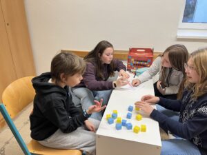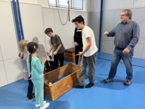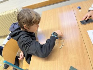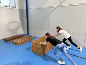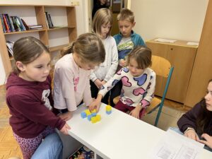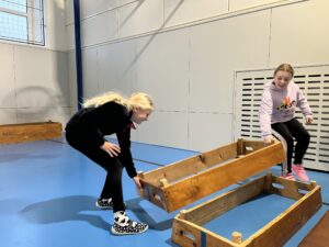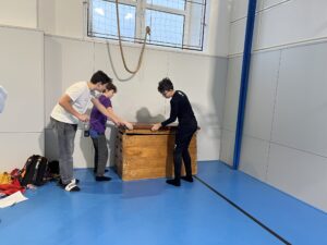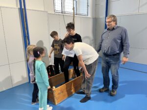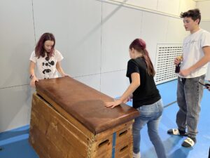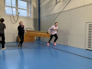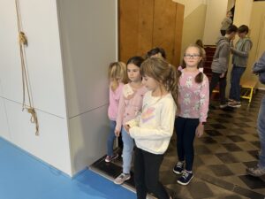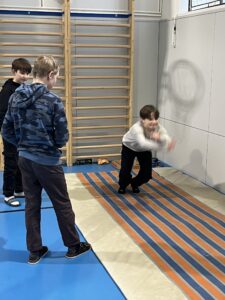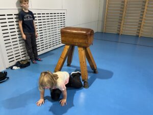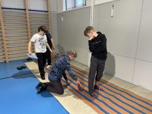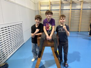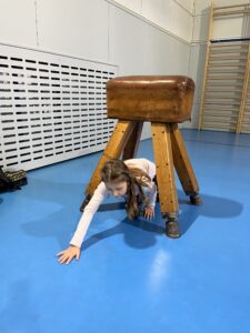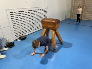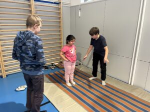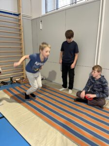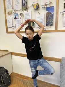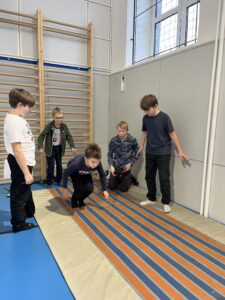 Ani letos se 7. A nenechala zahanbit a pro své kamarády z ostatních tříd připravila ve čtvrtek odpoledne 6 disciplín. Fyzicky nejnáročnější bylo asi přenášení švédské bedny po jednotlivých částech na šířku tělocvičny, rychlost mohli žáci využít při minutovém podlézání kozy a dobrý odraz byl potřeba u skoku do dálky z místa. Jemnou práci prstíků prověřilo skládání sirek do krabičky jednou rukou nebo stavění komínu z kostek. Nečekaně náročné bylo vydržet ve figuře čápa se zavřenýma očima.