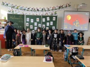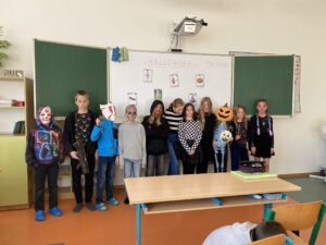 Dnešní den 31. října patřil svátku zvanému Halloween. Ten je známý svým pohanským původem a křesťanskými kořeny, stejně jako světskými tradicemi. Ve škole se od samého rána objevovaly strašidelné i zábavné kostýmy, dýňové řezby apod. Do akce se zapojily všechny třídy. V pondělí zástupci žákovského parlamentu vyhodnotí, která třída si za svou snahu zaslouží drobnou odměnu.