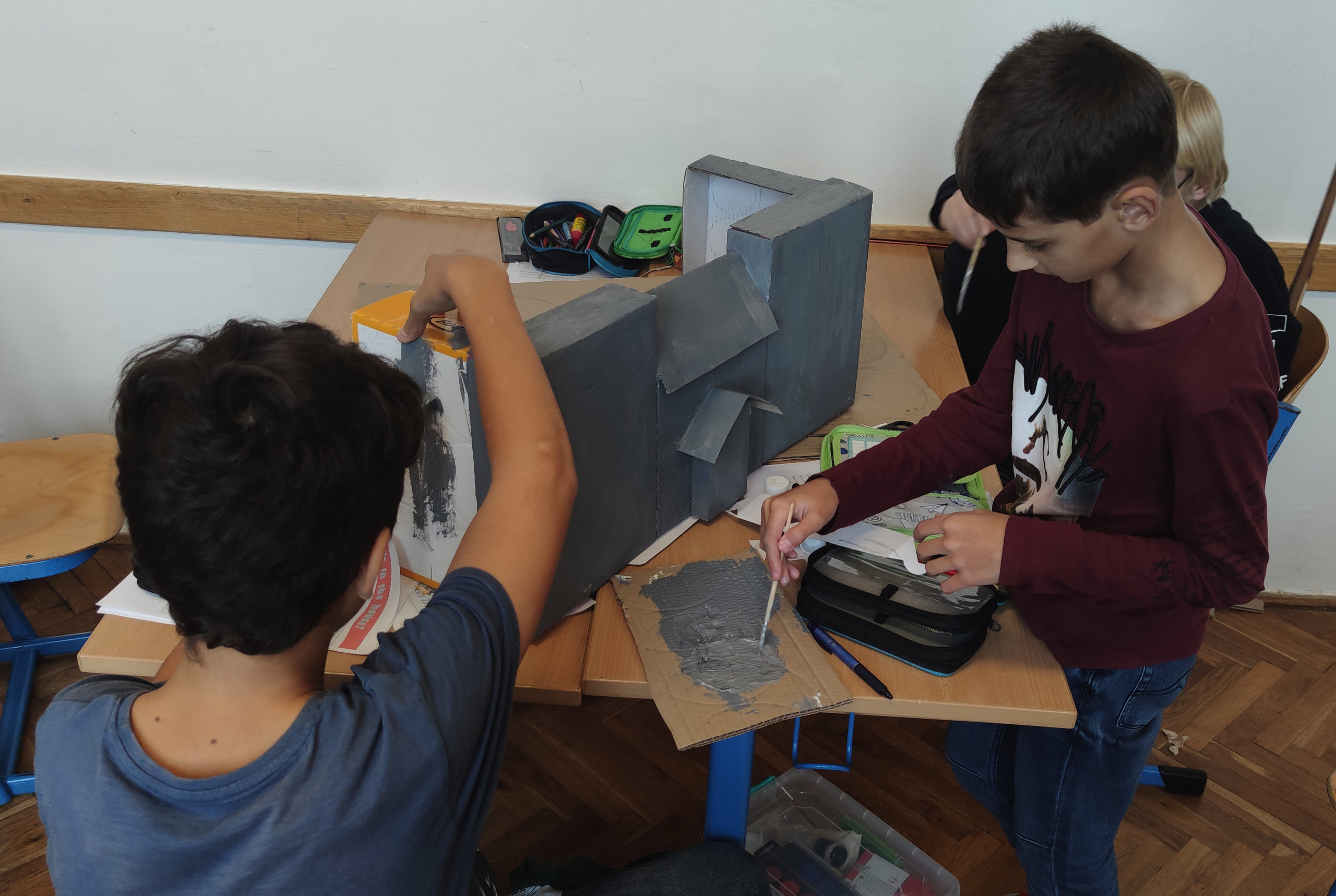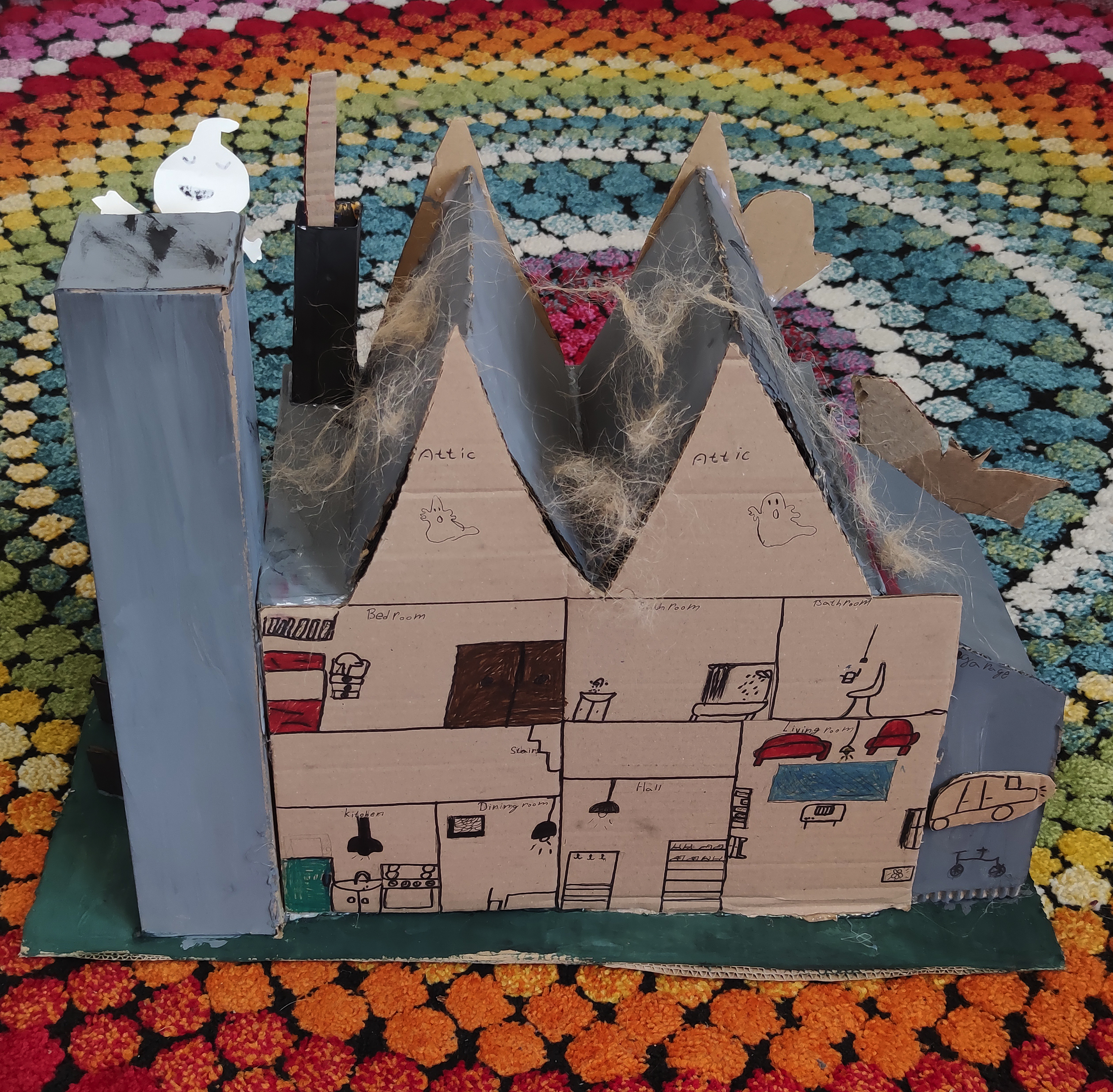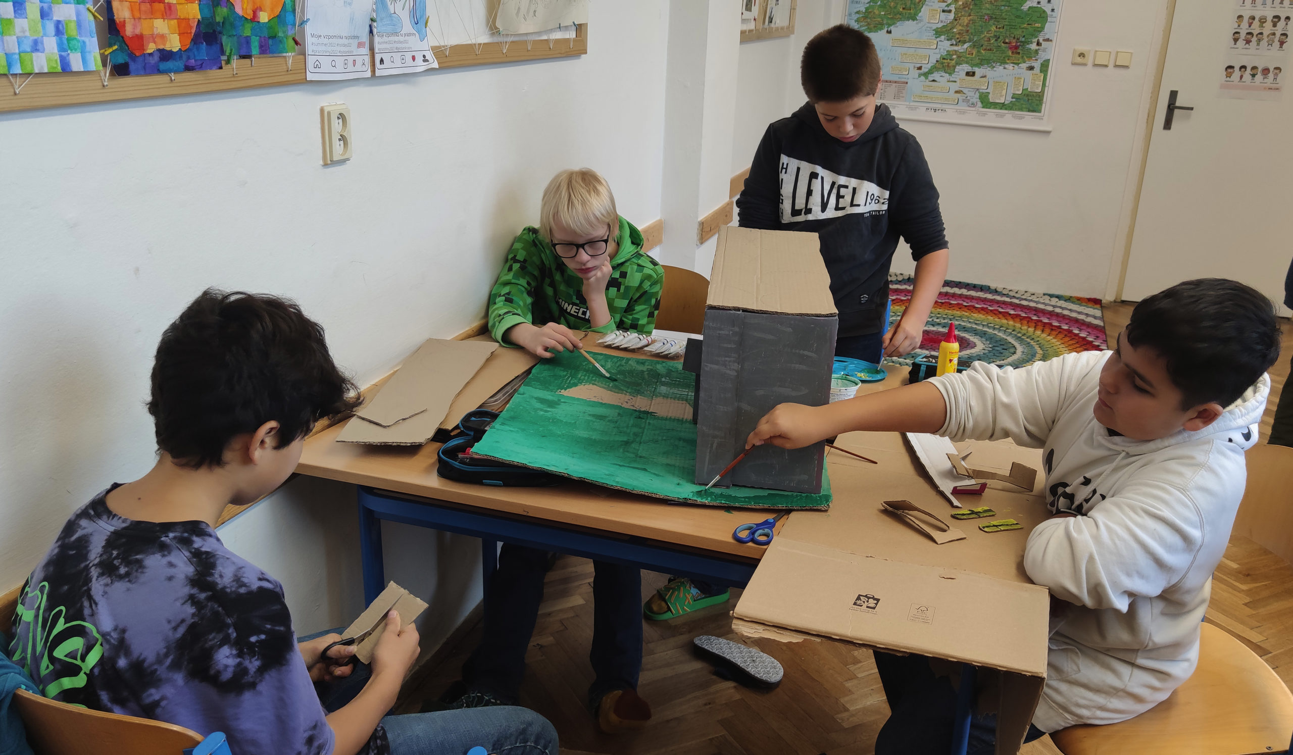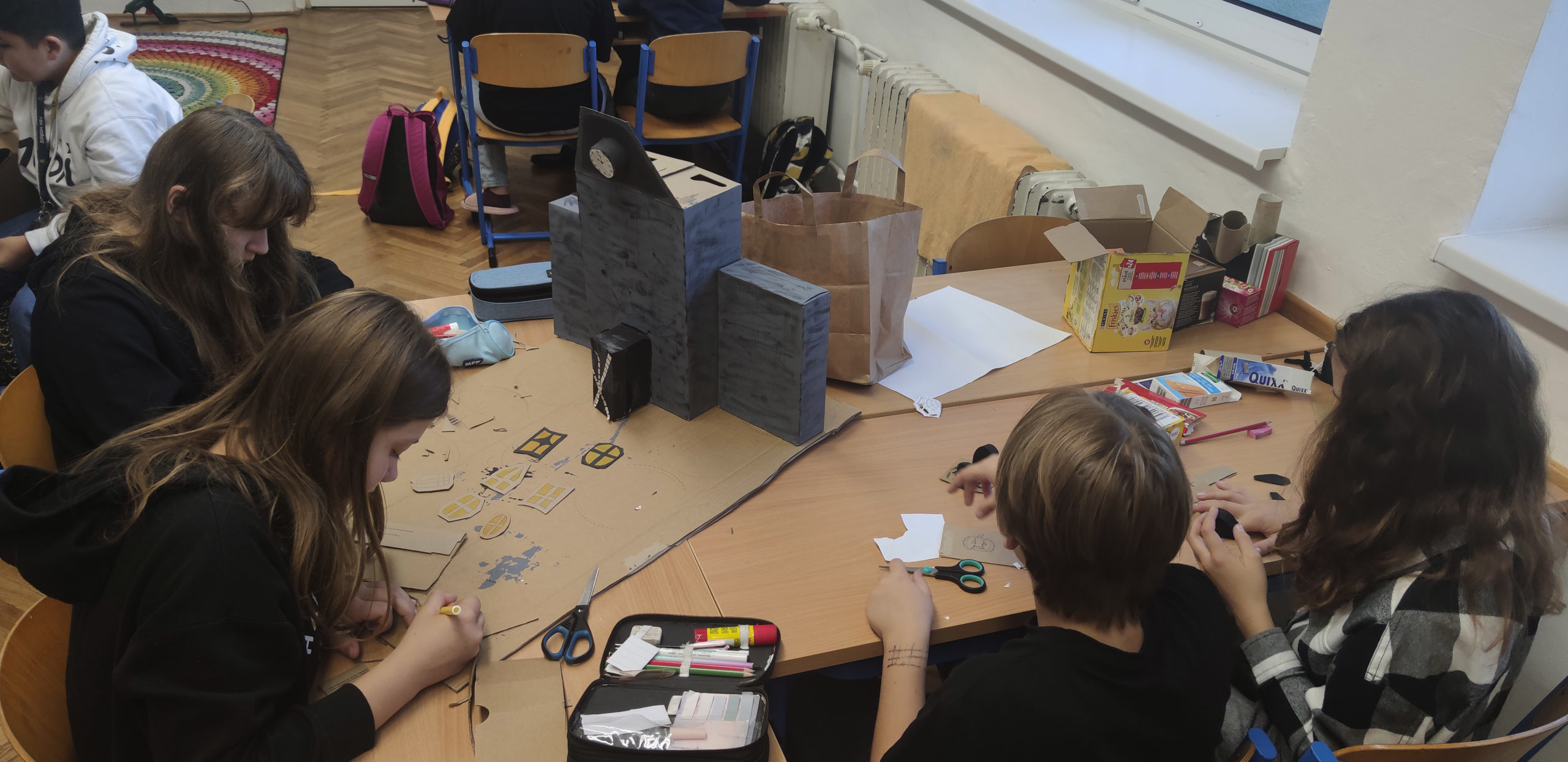 Šesťáci se během projektových dní konaných 24. a 25. října dozvěděli několik důležitých informací o svátku Halloween. Snažili se porozumět mluvenému anglickému dokumentu, doplnit chybějící slova v psaném textu a veškeré informace přeložit. Zazpívali si také anglickou písničku o strašidelném domě s duchy a naučili se slovíčka podstatná pro vlastní kreativní projekt „strašidelný dům“. Nakonec se rozdělili do skupin a zahráli si na architekty. Každá skupina vytvořila svůj vlastní strašidelný dům, který bude dále využíván na hodinách anglického jazyka pro výuku předložek, místností a vybavení. Dvoudenní projektové vyučování jsme zakončili Kiva lekcemi na podporu dobrých vztahů v kolektivu.