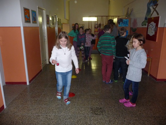 V pátek 27.2. se přízemí a první patro naší školy proměnily v herní stanoviště. Žáci 6.A a 6.B se spojili dohromady, aby vytvořili zábavné odpoledne pro družinové děti. Na jednotlivých stanovištích (hod na koš, skok do dálky, střelba míčem na bránu, poznávačka podle čichu, slalom s pingpongovým míčkem, ochutnávání ovoce a zeleniny poslepu, poznávačka věcí z pytle, židličky na hudbu a skok snožmo) si děti mohli pěkně zablbnout. Veříme, že se to všem dětem líbilo. Šesťáci zpestřili menším kamarádům páteční odpoledne a za to jim patří pochvala. Děkujeme.