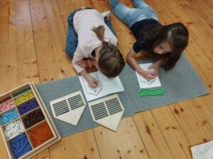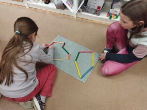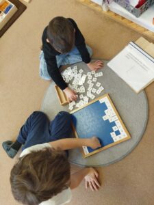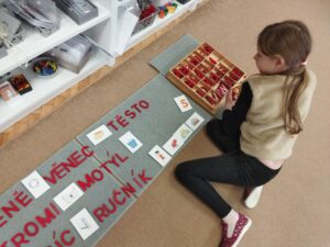 Děti se vždy snaží přijít na to, jak do sebe vše zapadá a co spolu určitě nějak souvisí. K tomu jim u nás napomáhají pomůcky a vzájemná spolupráce mezi sebou.