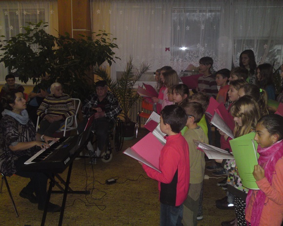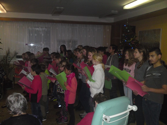 Když jsme v říjnu měli první schůzku sborečku, byli jsme překvapení, kolik skvělých a šikovných dětí se sešlo. Postupem času několik zpěváčků z různých důvodů chodit přestalo, ale i tak nás zbylo přes třicet, což je vážně super. Společně jsme nacvičili vánoční program, který jsme poprvé prezentovali před rodiči na školní adventní akci. Našim zpěváčkům se koncert moc povedl a nám bylo líto, že bychom si už krásné vánoční písničky nezazpívali. Proto jsme všichni vyrazili do domova seniorů, kde jsme rádi zopakovali náš vánoční program. Všem se nám zpívalo moc dobře, byla dobrá atmosféra a byli jsme rádi, že jsme mohli potěšit dědečky a babičky. Děkujeme za sladkou odměnu, za potlesk a krásná slova chvály.