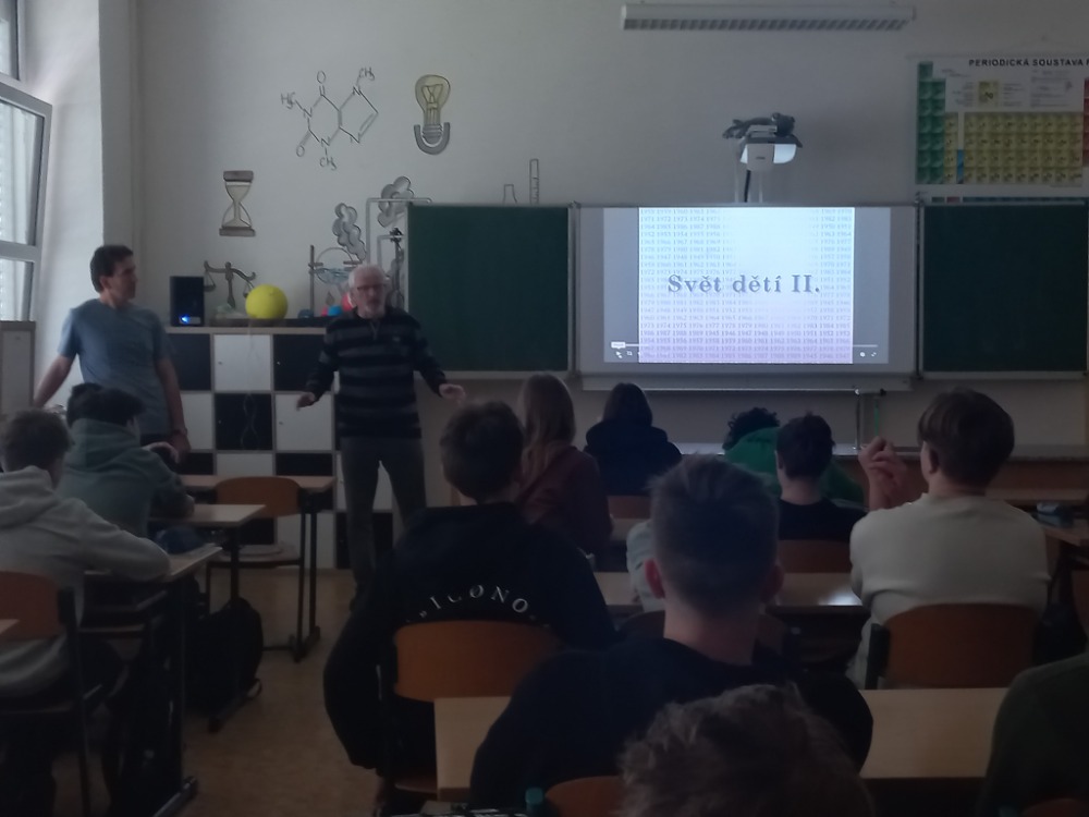 Právě o tom byla beseda s pamětníkem a místním kronikářem panem Jaroslavem Kotrbáčkem. S pomocí krátkých videí zaměřených tematicky na kulturu, trávení volného času, pracovní proces či kolektivizaci venkova se žáci dozvídali, jak vypadal život našich předků před pár desetiletími. Nejvíce je asi zaujalo téma svět dětí, kdy mohli nejlépe porovnávat, k jak velkým proměnám v životě dětí došlo.