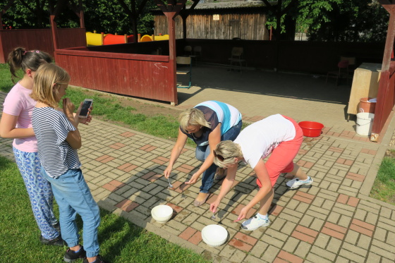 Děti si připravily zábavné soutěže na několika stanovištích a pozvaly své rodiče i prarodiče, aby si na školním hřišti připomněli dobu svých dětských her… A tak si mohli mezi sebou změřit své síly, obratnost i šikovnost společně i se svými dalšími dětmi.