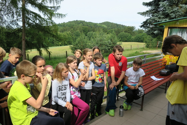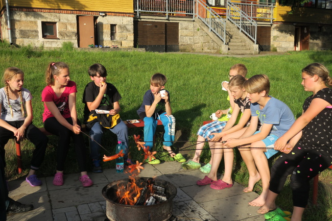 Na pokoj jsme sice přišli promočeni skrz naskrz, ale to nám nevadilo. Pršet zanedlouho přestalo a my si užívali sportování, přírody, společnosti kamarádů, večerního opékání u táboráku a nakonec i dobrodružné stezky odvahy.