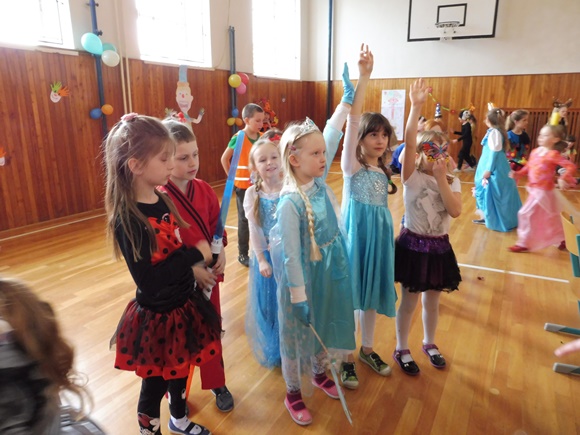 Jako každý rok se i letos u nás v tělocvičně konal dětský karneval. Navštívili nás například kouzelník, princezna Elsa, Sněhurka, policista, jelen, kočka, beruška, samuraj nebo Pipi Dlouhá punčocha. Děti skotačily v rytmu známých písní, které si pro ně připravily studentky 8. ročníku. Nechyběly ani tradiční soutěže jako tanec s jablkem, foukání do papírové kuličky, přesouvání po kobercích nebo podlézání lana. Na závěr byly vyhlášeny 3 nekrásnější masky a také nejlepší tanečník. Na všechny výherce čekal nejen diplom, ale i odměna a my už se zase těšíme na příští rok. 🙂