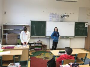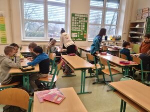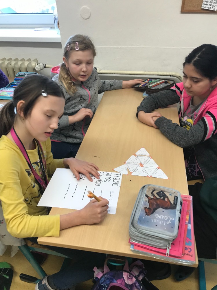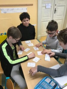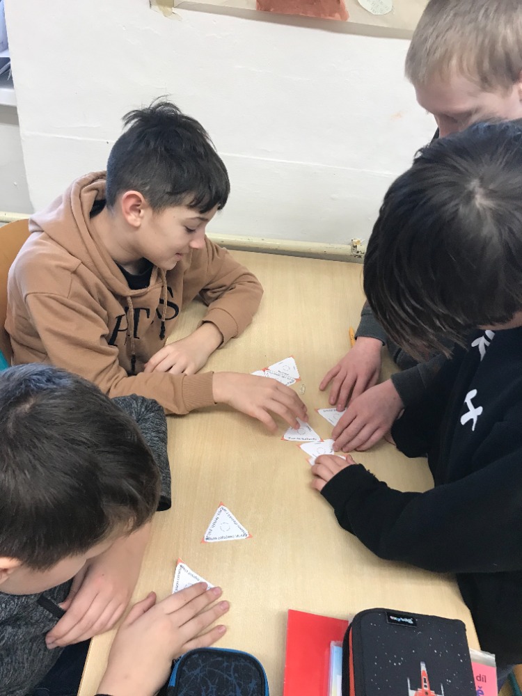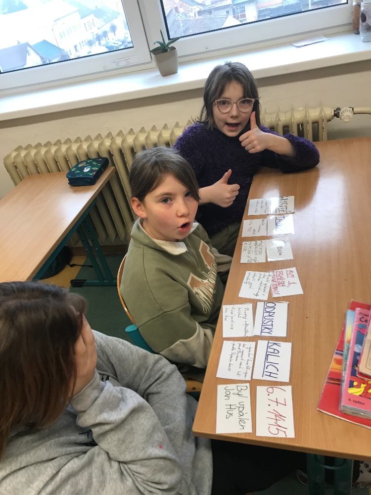 V pátek před jarními prázdninami přišli žáci 7. A seznámit své mladší spolužáky ze čtvrté a páté třídy s příběhem Jana Husa a jeho následovníků. Nejprve spolužákům vyprávěli o osudu a učení Jana Husa, poté představili husitské vojsko a ideály za které bojovalo atd… Poté si žáci mohli zábavnou formou ověřit své nově nabité poznatky. Jsem ráda, že meziročníkové učení bavilo sedmáky i jejich mladší spolužáky.