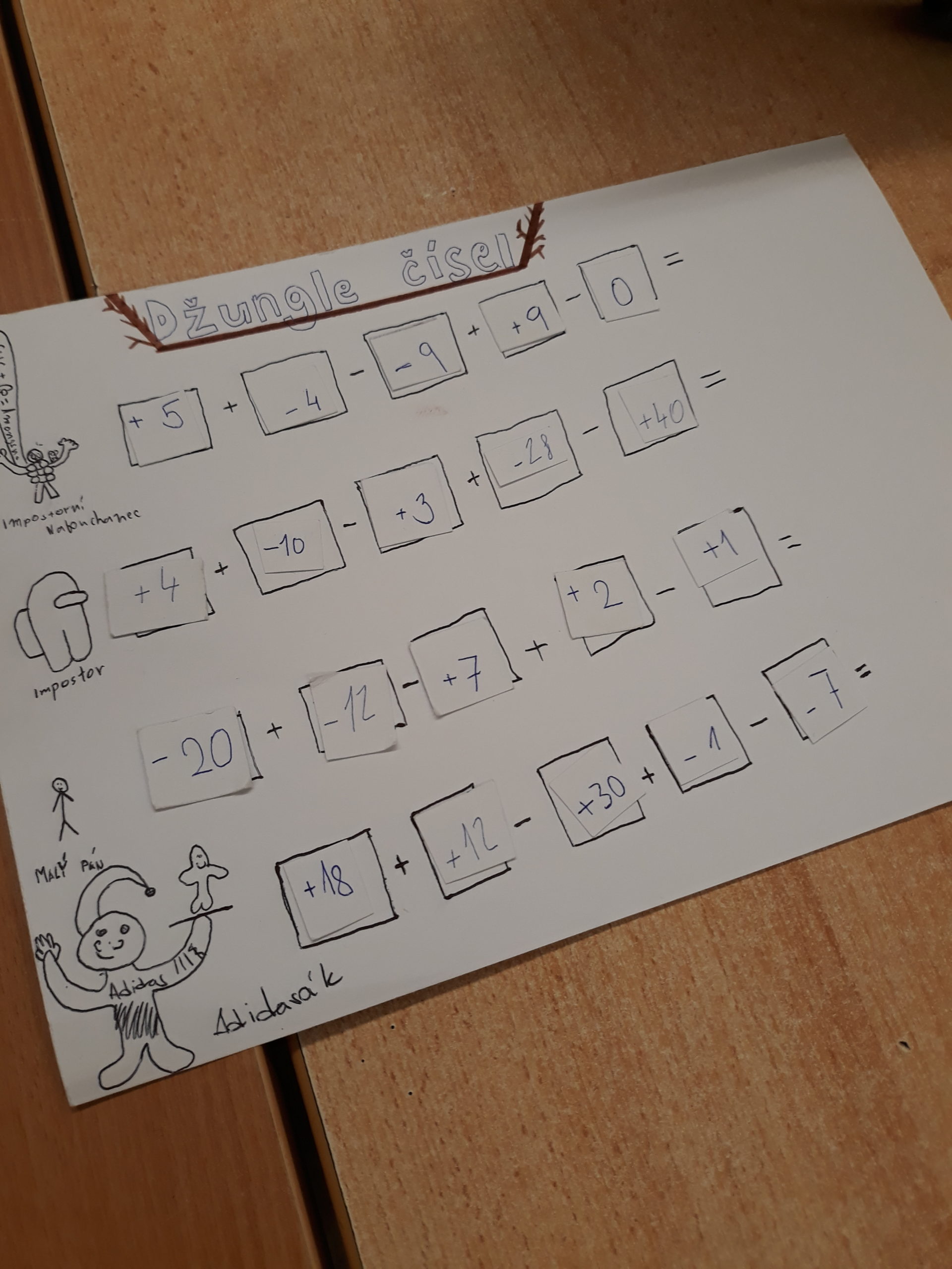 Tímto titulkem by se dalo nazvat počínání žáků sedmých tříd v průběhu celého týdne. Sedmáci totiž stáli před nelehkým úkolem své znalosti z hodin matematiky převést do praxe a vytvořit matematickou hru, která by se zabývala celými čísly. Někteří vsadili na osvědčené hry typu pexeso, jiní se pustili do vytváření složitějších strategických her. Hry jedněch se zaměřily na absolutní hodnotu, jiní celá čísla sčítali a odčítali, někteří pak zkombinovali všechny početní operace. No a když byly hry vytvořeny a opatřeny nezbytnými pravidly, přišla na řadu fáze ověřování a hraní. Při té se sedmáci hezky pobavili, příjemně si započítali a celá čísla jim už hlavu nedělají.