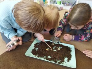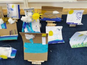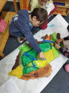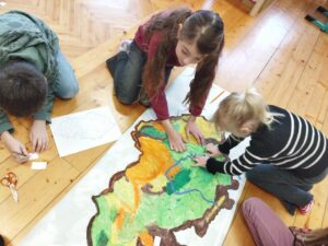Místo, kde žijeme a vše, co se v přírodě děje, jsme se pokusili proměnit v něco, na co si můžeme sáhnout, prožít, nebo si prostě jen vyzkoušet. A tak vznikly práce o naší České republice, o řekách a koloběhu vody, o ptácích, kteří odlétli na podzim do Afriky a nyní se nám vrací a o probouzející se přírodě.
