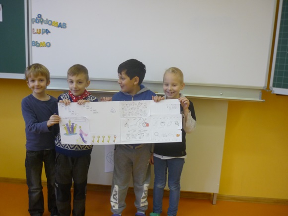 Prvňáčci mají za sebou další projekt, tentokrát s názvem Klíčování. Při skupinové práci měli prokázat znalost různých podob písmen, čtení slabik, psaní slov, přesnost stříhání a mnoho dalšího. Za každý splněný úkol získala skupina klíč a po nasbírání všech pěti si každý odnesl domů svůj první slabikář. Musíme naše prvňáčky moc pochválit, protože prokázali, že se toho už mnoho naučili. Neméně si ceníme získaných návyků při práci ve skupině, už nepracujeme chaoticky a hlučně, umíme se dobře domluvit a spolupracovat.