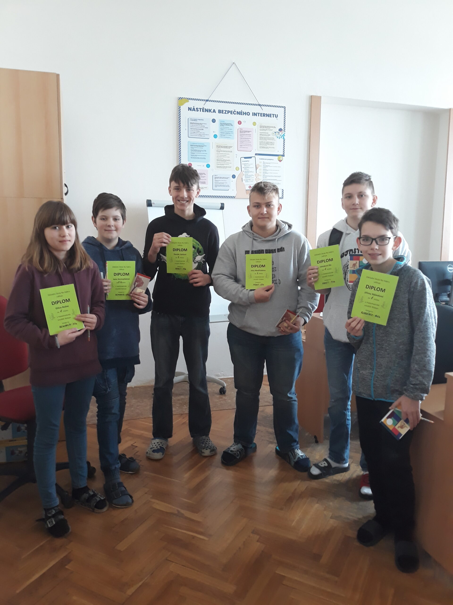 Také v letošním roce doskákal na naši školu matematický klokan a přinesl s sebou spoustu záludných slovních úloh, které prověřily logické uvažování, prostorovou představivost i kombinační schopnosti našich žáků. Soutěžilo se od 2. do 9. třídy a hlavičky si lámali opravdu všichni. V soutěži někdy překvapí nenápadní žáci vysokým počtem dosažených bodů, jindy zase šikovní matikáři zúročí své schopnosti. Nejinak tomu bylo i letos. Ti nejlepší si dnes převzali diplomy a drobné ceny za své výkony. Blahopřejeme a přejeme hodně radosti s matematikou! 🙂
