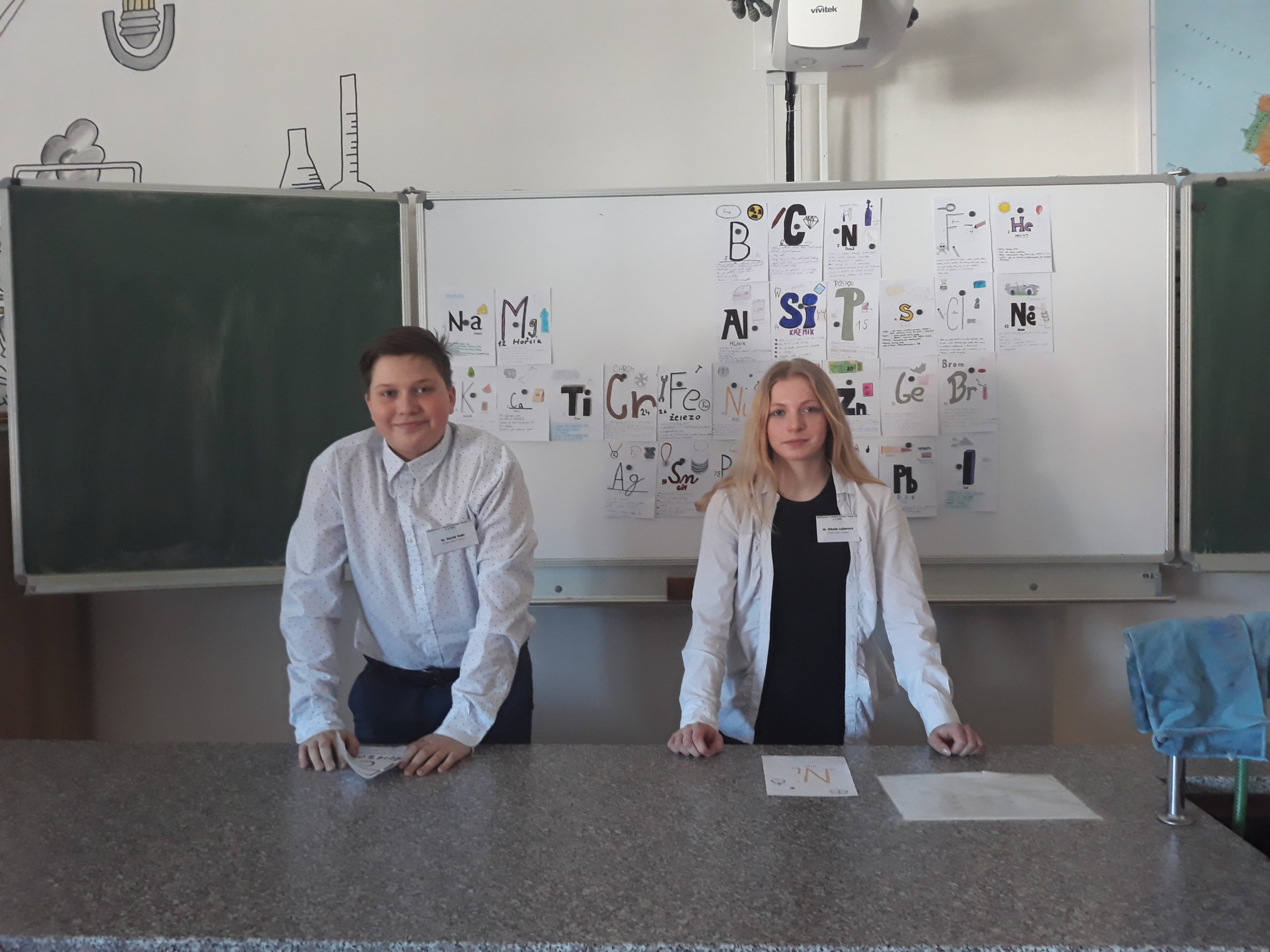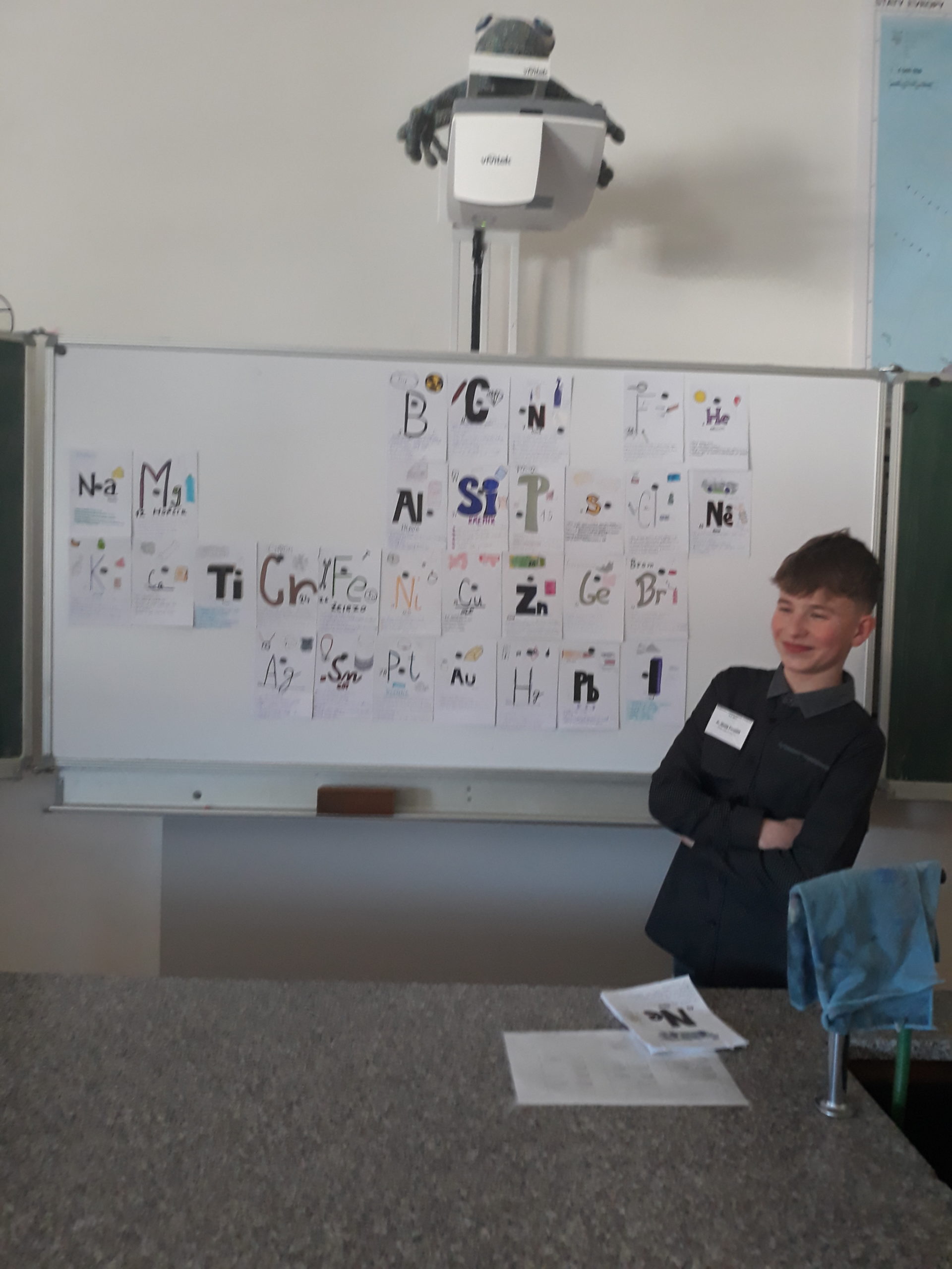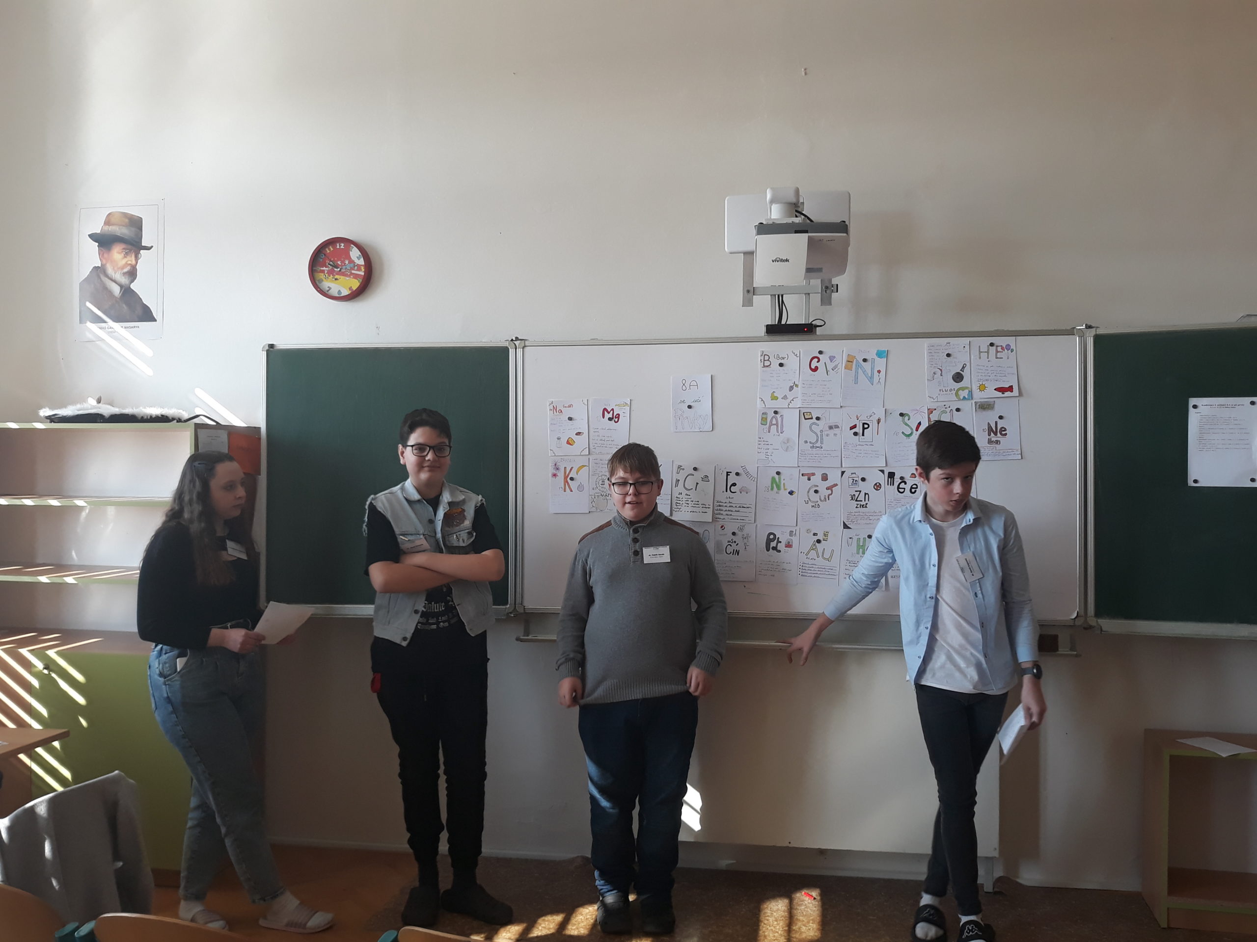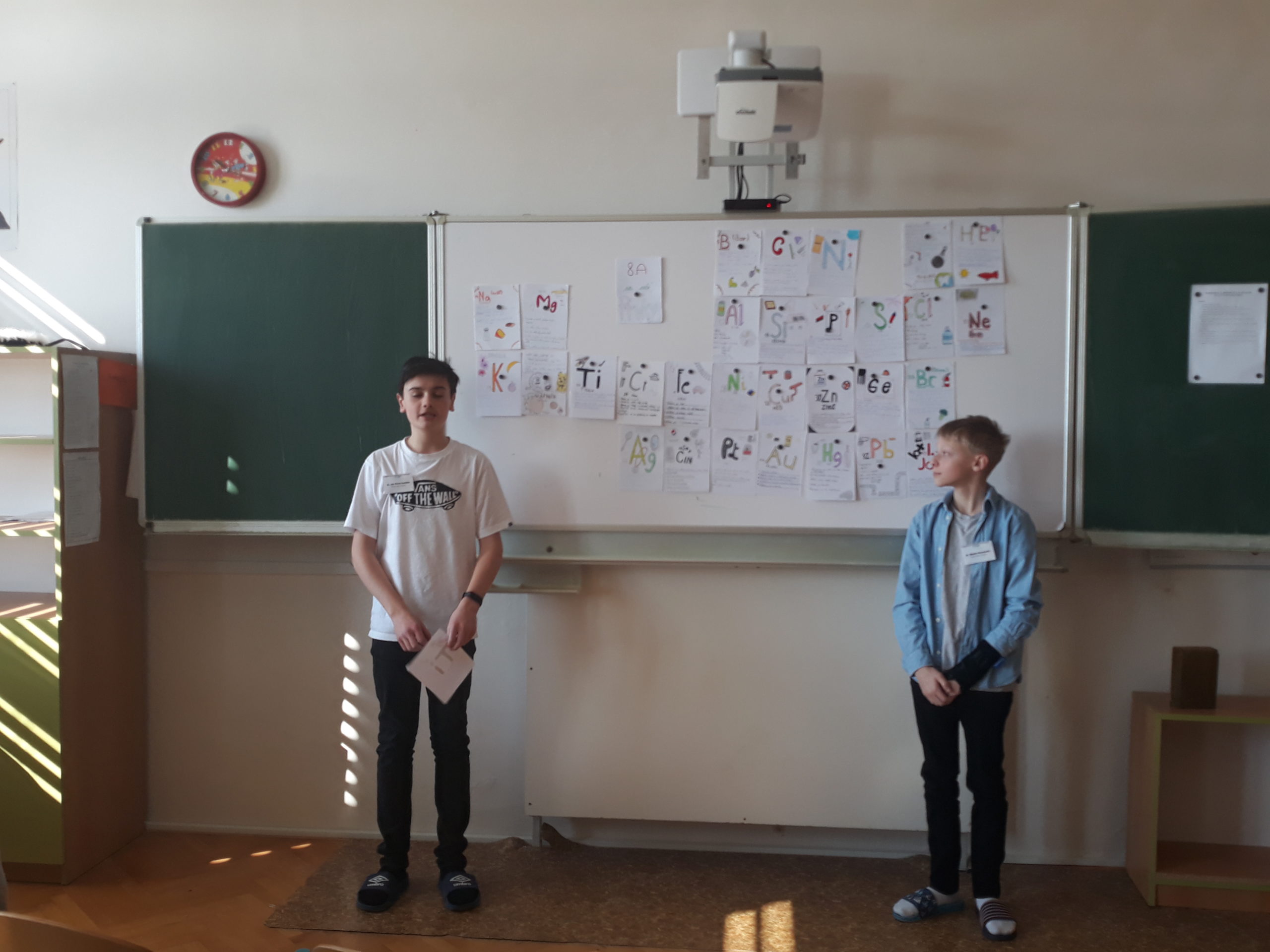 Je to již nějaký ten pátek, co žáci 8. tříd dostali do rukou dopis s prosbou o spolupráci chemickému velikánovi D. I. Mendělejevovi. Jelikož se ale osmáci výzev nebojí, s vervou se pustili do práce na “učebnici” chemických prvků. Nejprve si rozdělili úkoly tak, aby pokryli ty nejznámější prvky, které v periodické tabulce můžeme najít. Potom už vyhledávali a zpracovávali informace na přehledné karty, které doplnili o obrázky charakterizující tyto prvky.