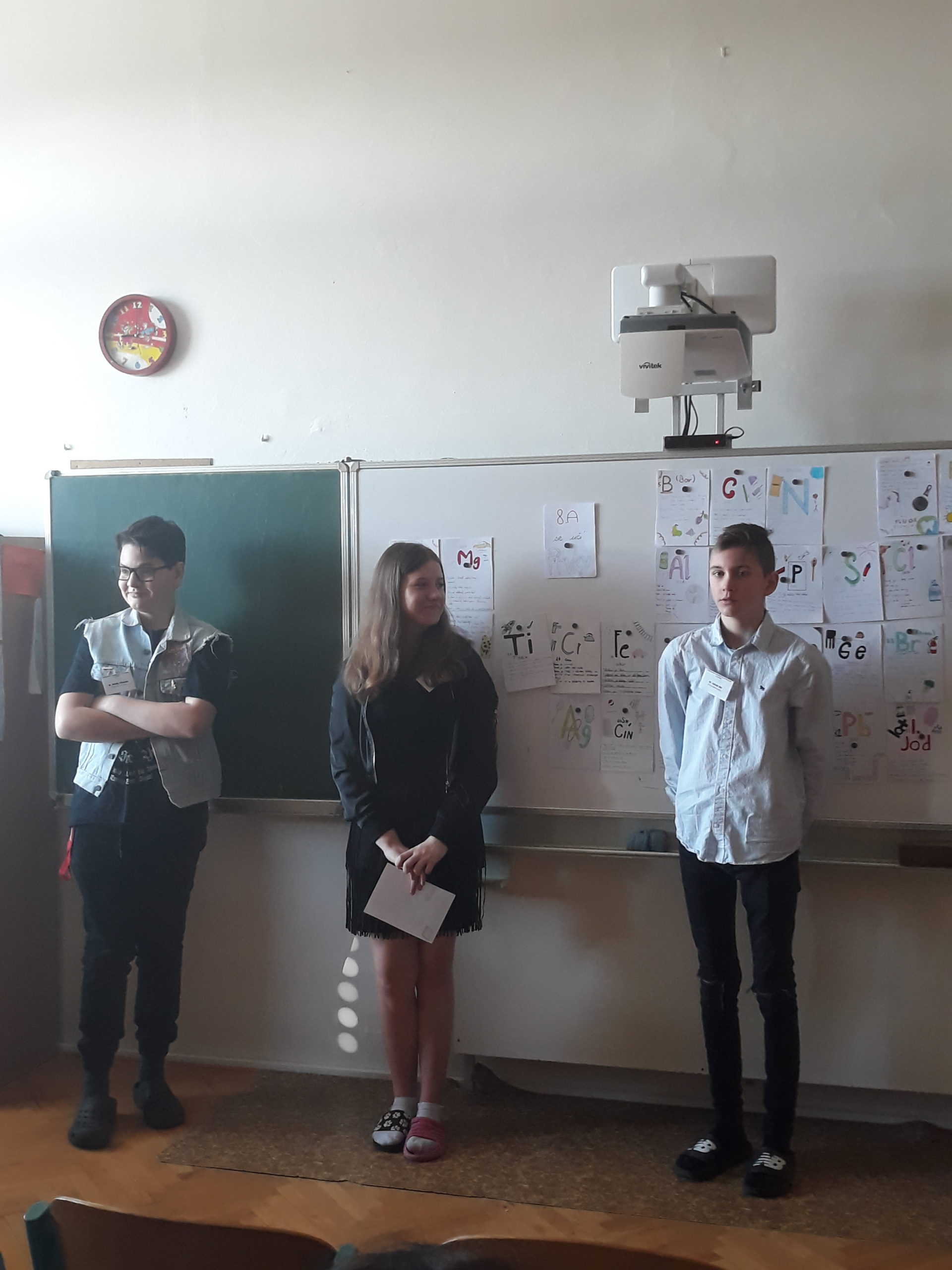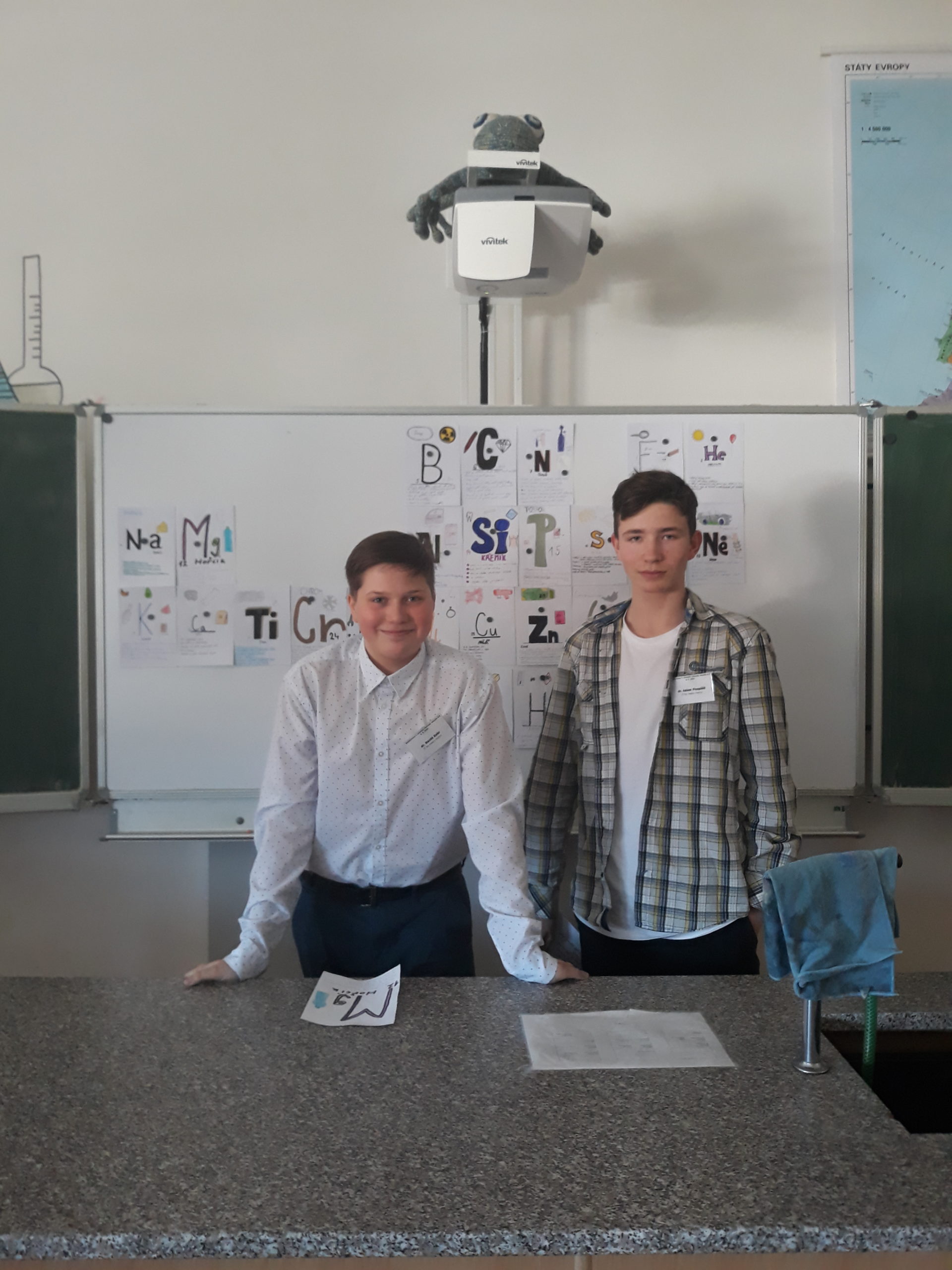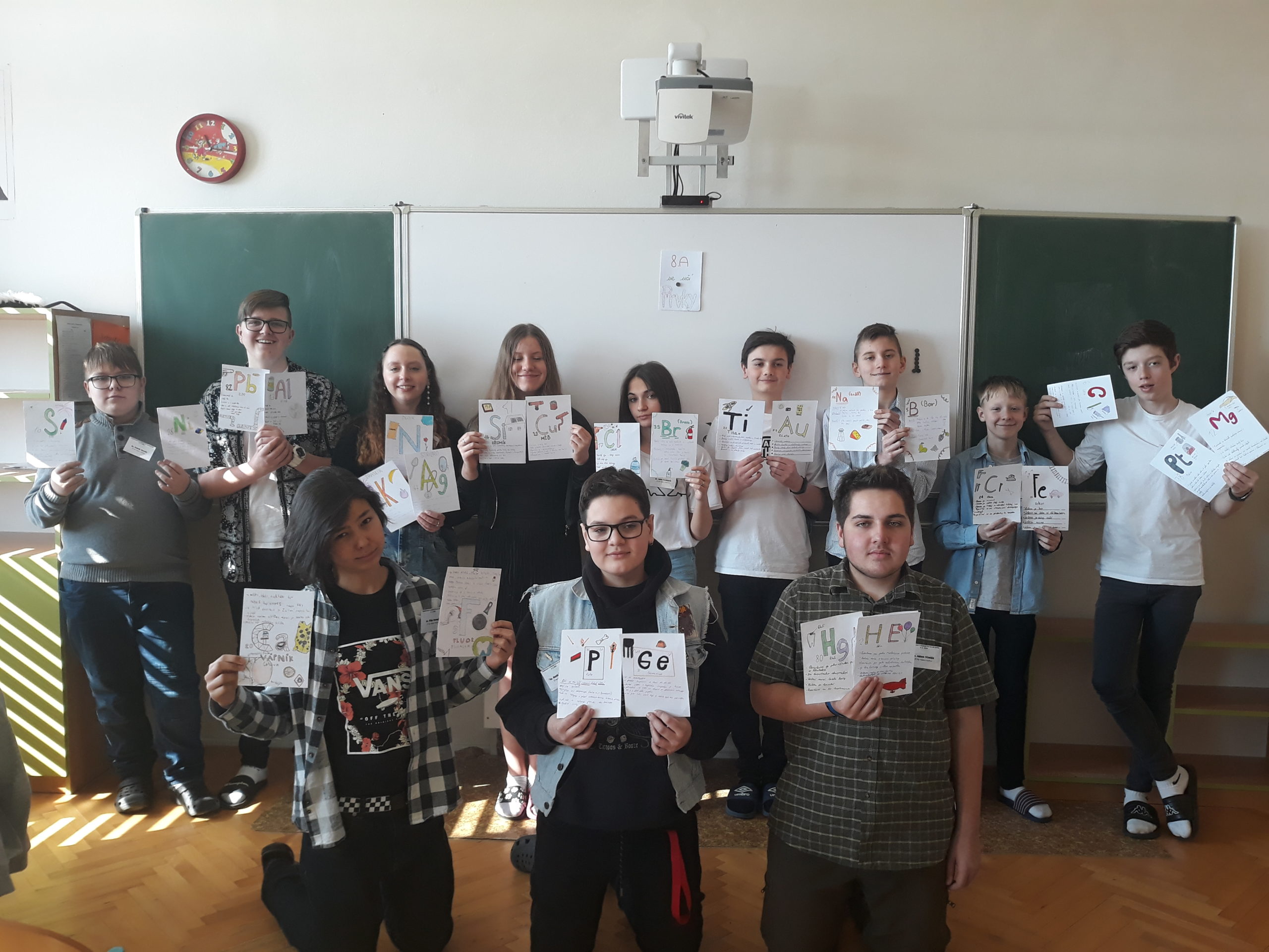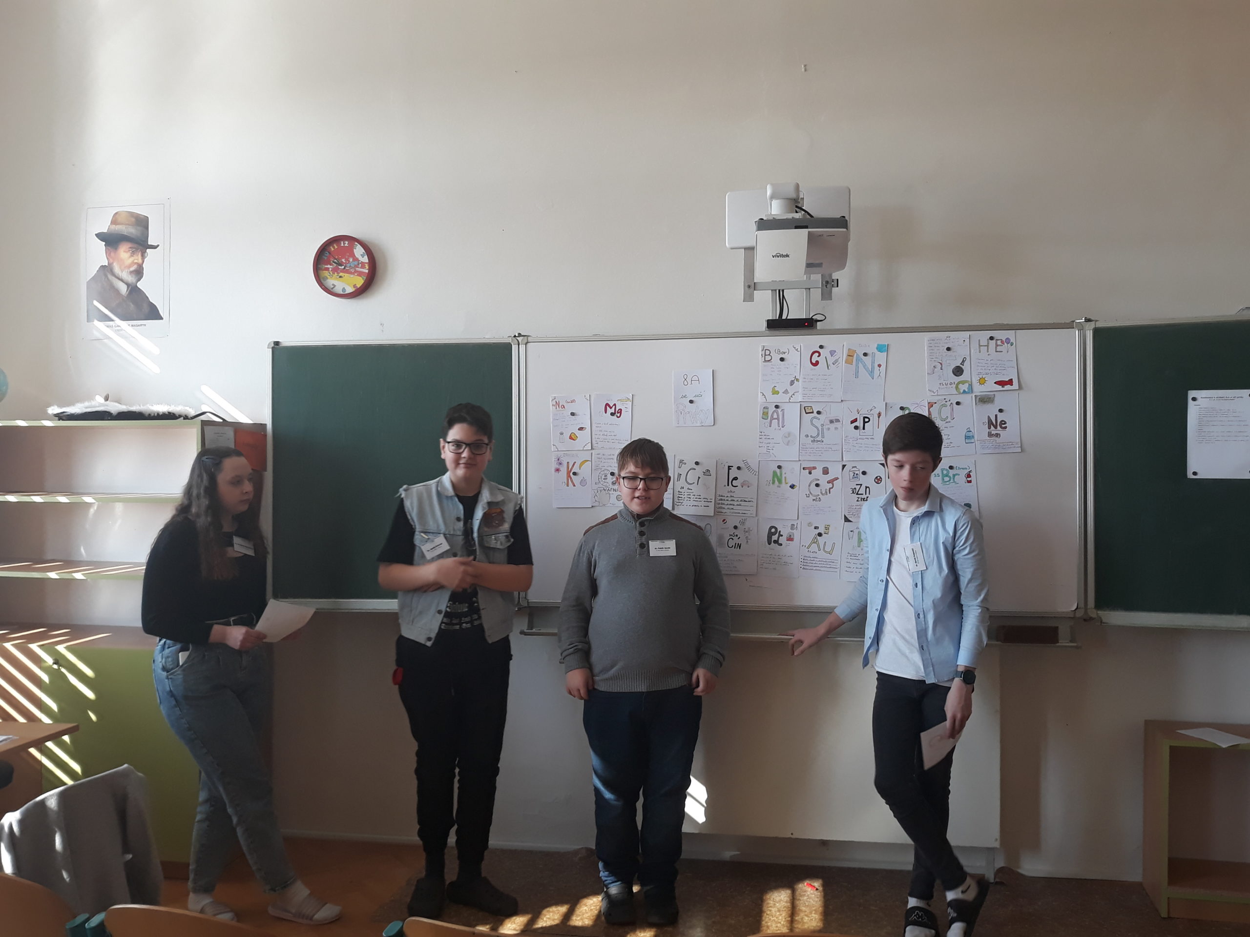 Je to již nějaký ten pátek, co žáci 8. tříd dostali do rukou dopis s prosbou o spolupráci chemickému velikánovi D. I. Mendělejevovi. Jelikož se ale osmáci výzev nebojí, s vervou se pustili do práce na “učebnici” chemických prvků. Nejprve si rozdělili úkoly tak, aby pokryli ty nejznámější prvky, které v periodické tabulce můžeme najít. Potom už vyhledávali a zpracovávali informace na přehledné karty, které doplnili o obrázky charakterizující tyto prvky.