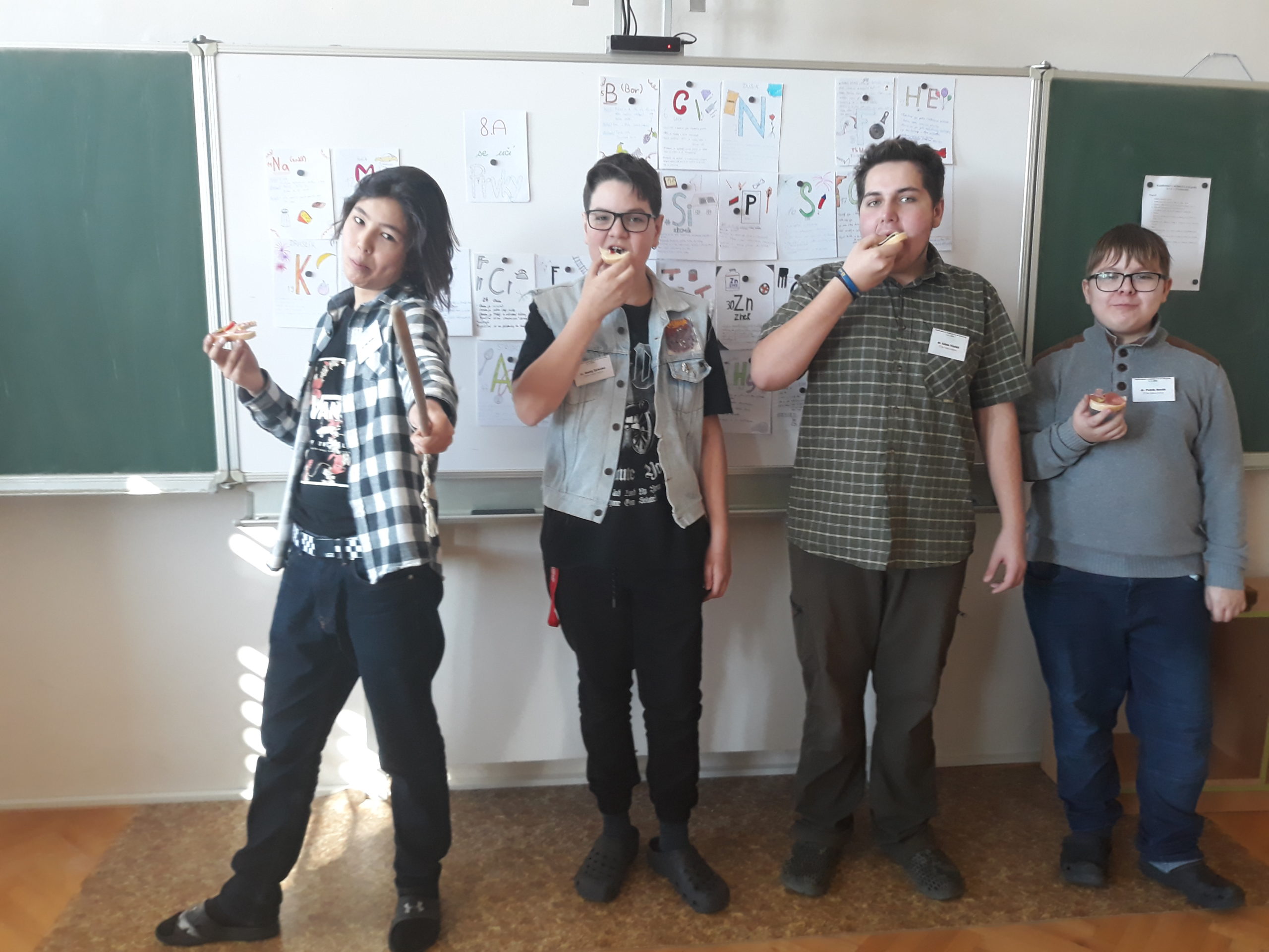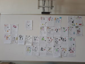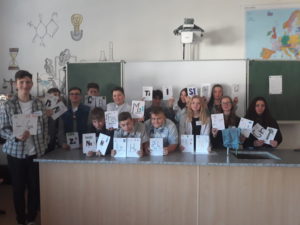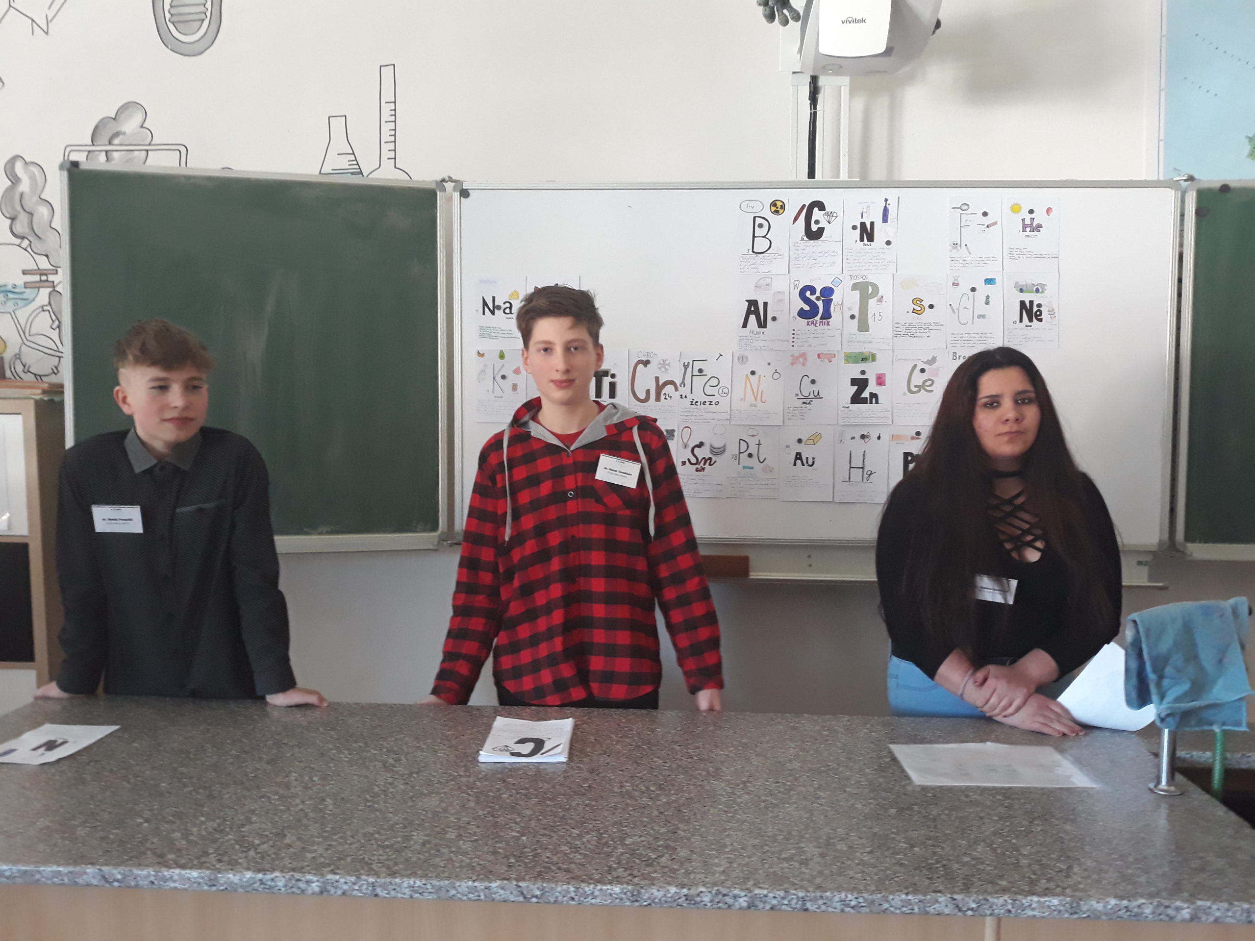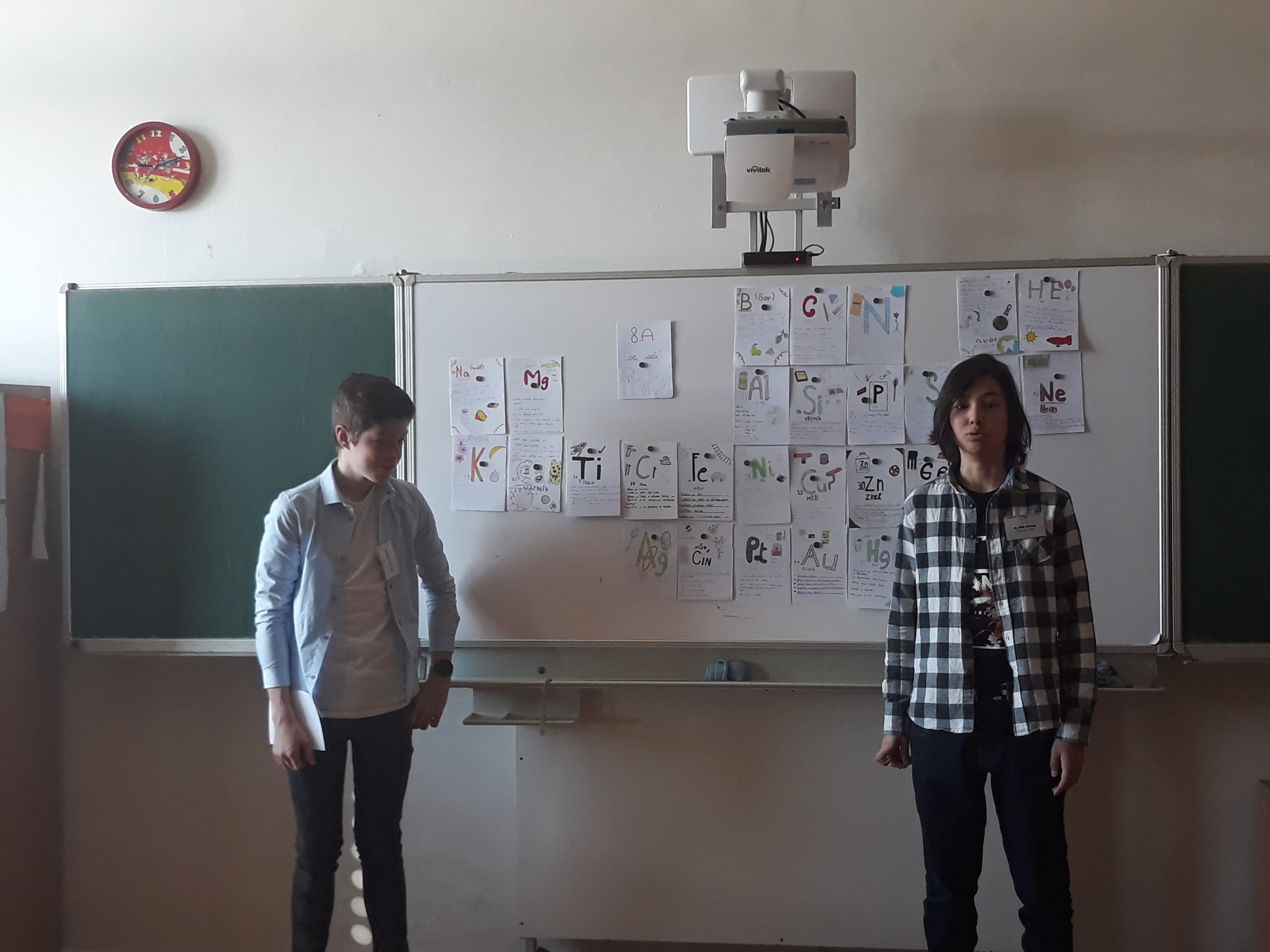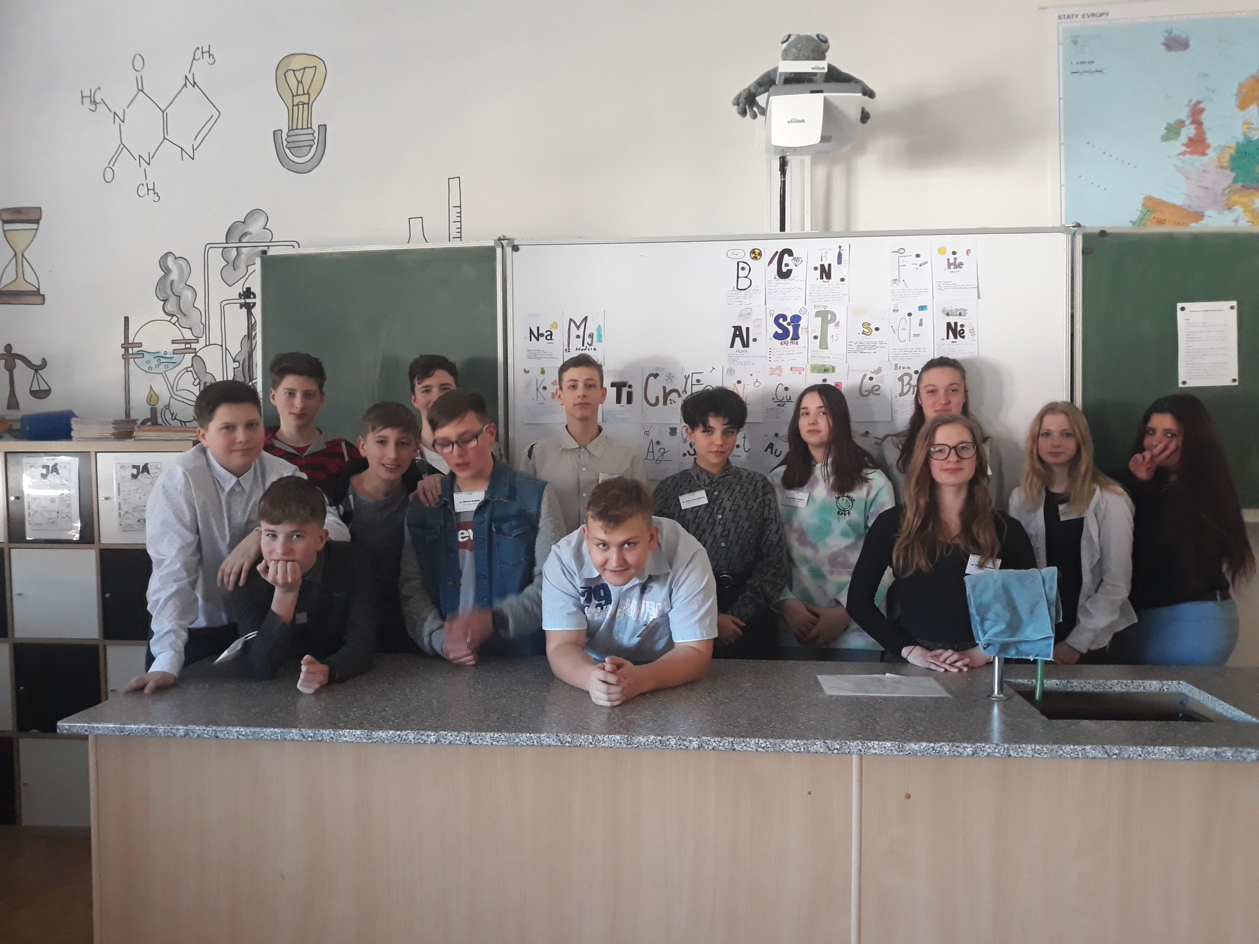 Je to již nějaký ten pátek, co žáci 8. tříd dostali do rukou dopis s prosbou o spolupráci chemickému velikánovi D. I. Mendělejevovi. Jelikož se ale osmáci výzev nebojí, s vervou se pustili do práce na “učebnici” chemických prvků. Nejprve si rozdělili úkoly tak, aby pokryli ty nejznámější prvky, které v periodické tabulce můžeme najít. Potom už vyhledávali a zpracovávali informace na přehledné karty, které doplnili o obrázky charakterizující tyto prvky.