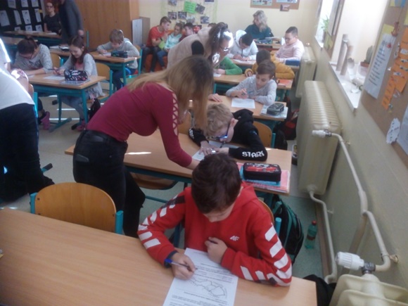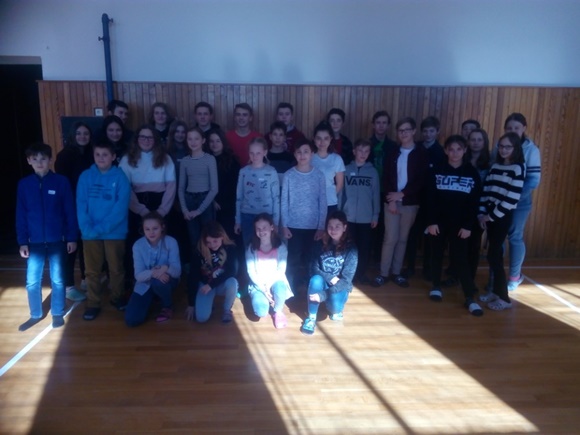 A právě ve čtvrtek 5. března jsme mohli u nás ve škole přivítat žáky 4. – 9. tříd z Lázní Bělohrad. Po společném přivítání jsme se přibližně po ročnících rozdělili a vyšli vstříc společným třem hodinám. Během nich se žáci obou škol společně učili, spolupracovali, seznamovali s chodem školy či třídy. O velké přestávce naši „haberští parlamenťáci“ ukázali svým kolegům celou školu včetně kuchyňky, kde na všechny čekalo drobné sladké pohoštění. Hodin se zúčastnily i paní učitelky z Lázní Bělohrad. Tři hodinky rychle utekly. Po nich jsme se sešli v tělocvičně, kde jsme se rozloučili a vyfotili. Poté se již Křečci oblékli a po prohlídce naší zahrady a hřiště směřovali na náměstí do pizzerie, kde si pochutnali na zasloužené odměně.