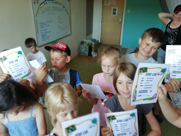 Dnes jsme v první třídě slavnostně uzavřeli školní rok poslední hodinou angličtiny, přezkoušením znalostí a také rozdáním vysvědčení. Všichni úspěšně zvládli první rok a my přejeme krásné prázdniny a těšíme se opět v září!