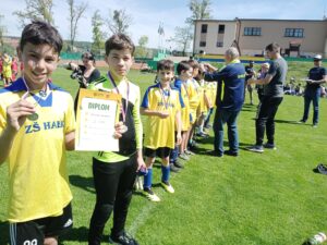 V úterý 29. dubna se v krásném prostředí fotbalového areálu v Miletíně uskutečnilo okrskové kolo Mc Donalds Cupu v kopané nejmladších žáků. Po letech se zúčastnilo i družstvo našich čtvrťáků a páťáků ve složení Matěj Vondra, Vít Jezbera, Jáchym Trejbal, Jakub Hošek, Štěpán Barth, Jan Švec, Vašek Charvát, Olexij Pidlisnyi, Theodor Martinec a Matěj Hošek. Po vlažném začátku s domácími, kdy jsme se na hřišti hledali a prohráli nešťastným vlastním gólem 1 : 2 s domácími, kteří nakonec turnaj vyhráli, jsme se rozehráli a předvedli nádhernou kopanou. Své soupeře z Daliborky, Komendy a Cerekvice jsme deklasovali 5:1,5:1 a 6:1 a zcela zaslouženě vybojovali stříbrné medaile a postup do okresního kola, které se uskuteční v úterý 6. května v Jičíně. Lví zásluhu na našem výsledku má Matěj Vondra, který dal sám čtrnáct branek. Několik se mu jich povedlo po sólovém úniku přes celé hřiště. Všichni hráči však podali vynikající výkon. Naši gólovou bilanci vylepšil dvěma góly Jáchym Trejbal a jedním přispěl Honza Švec. Gratulujeme našemu týmu k vynikajícímu výsledku a přejeme mnoho štěstí v okresním kole.