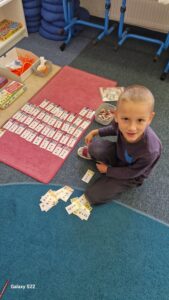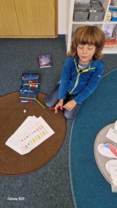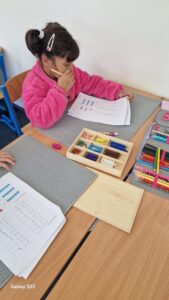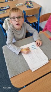 Pracujeme s pomůckami, počítáme do sešitů i spolupracujeme při řešení úkolů.