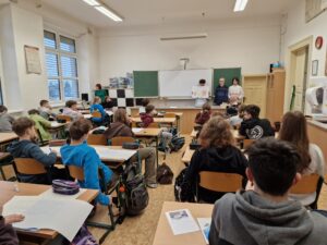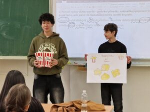 V úterý 21. ledna pak na ně čekal nelehký úkol – připravit během jedné hodiny 24 porcí popcornu a zároveň v každé třídě krátce odprezentovat, co se o popcornu dozvěděli.