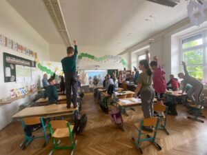 Žáci 4.A se na událost předem pečlivě připravili a stali se doslova odborníky na problematiku mořských želv – nastudovali si důležité informace, vytvořili poutavé plakáty a osobně pozvali ostatní třídy včetně Montessori tříd na připravovanou besedu s Hanou Svobodovou. Kromě toho připravili i tematické pracovní listy, omalovánky a plakáty s vyobrazením krunýřů tří druhů mořských želv – Karety pravé, Karety obrovské a Kožatky velké – a to v jejich skutečné velikosti, aby si každý mohl udělat představu, jak velcí tito mořští tvorové ve skutečnosti jsou.