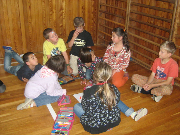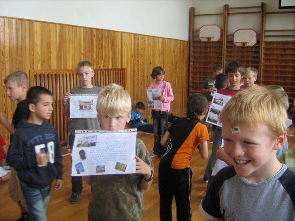 V druhé části jsme sbírali informace ve městě. Ze získaných informací děti vytvořily výukové plakáty. Ve třetí části – sdílení – jsme společně s prvními ročníky nabyté informace využili při luštění křížovky, při práci s mapou a dotvoření plánku Navzájem jsme si zhodnotili své listy. 1. části projektu každý zanechal svoji stopu ze závěrečného dne projektu. Společně sdílení jsme uzavřeli naší písničkou „Hořice to je naše město“, od Barči Tvrďochové ze 2. B