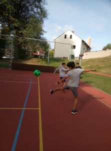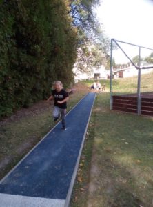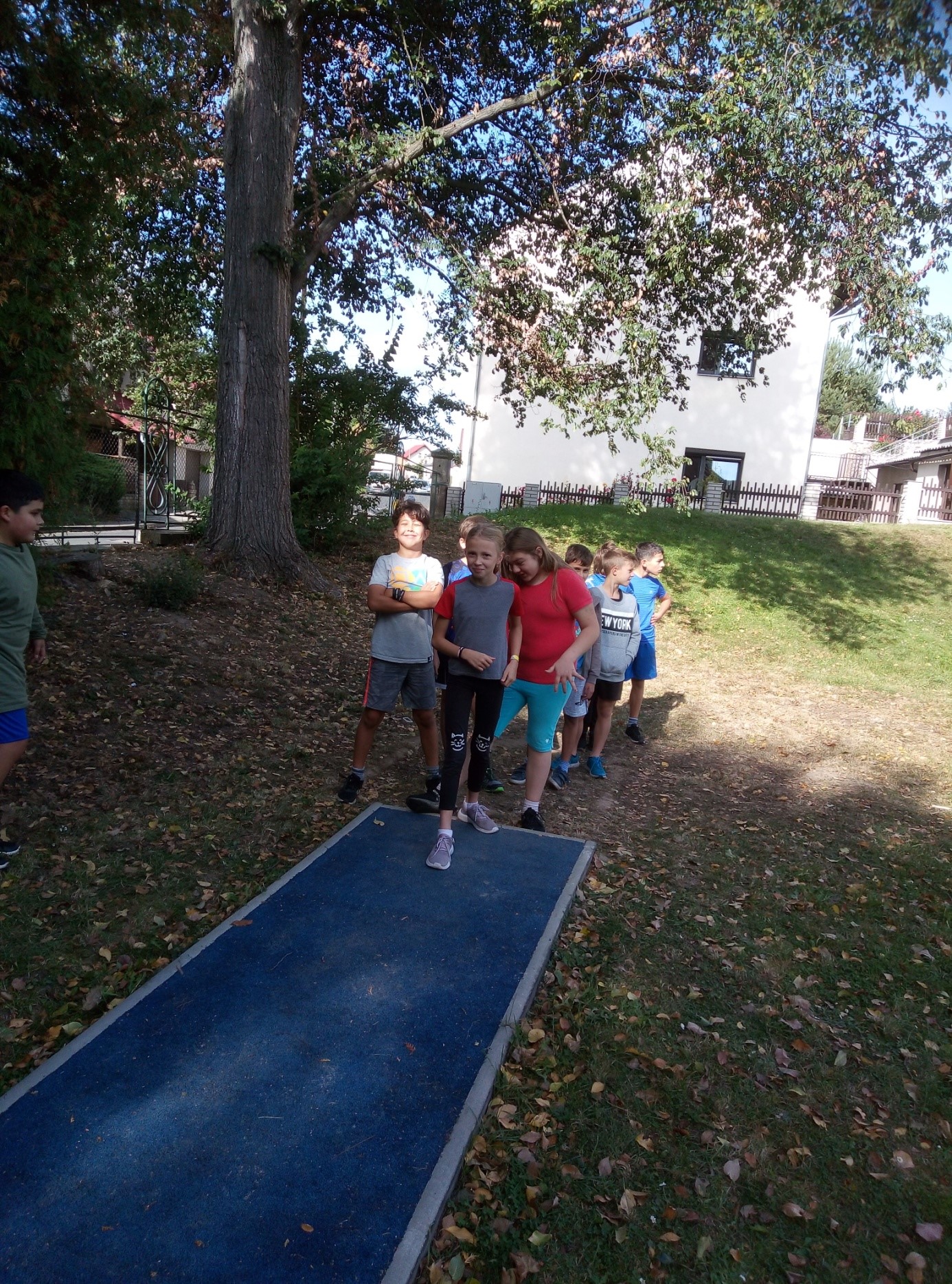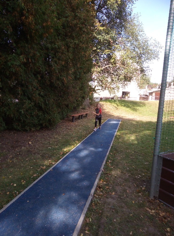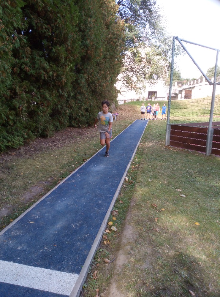 Nádherně slunečné podzimní dny nás přímo lákají do přírody. Na naší škole máme tu výhodu, že máme úplně nová moderní sportoviště, kde trávíme každou volnou chvíli.  Zejména krásně modré rozběžiště na skok daleký nás neodolatelně láká a nejraději bychom trénovali skok daleký i o matematice. Chlapci se zase nemohou nabažit multifunkčního hřiště a kopané na jeho úžasně měkkém povrchu.