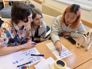 Enola, Vanessa a Wen ve svých prezentacích žákům přiblížily život a tradice ve svých zemích. Díky nim už víme, jak tamní lidé bydlí, jak se stravují nebo jaké svátky slaví. Na středeční Global Village jsme ochutnali taiwanský dezert Xue Hua Su, vyzkoušeli jezení hůlkami či základy kaligrafie, užili si rituál pití čaje a poznali další asijské kulturní zvyklosti.