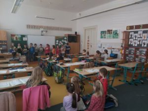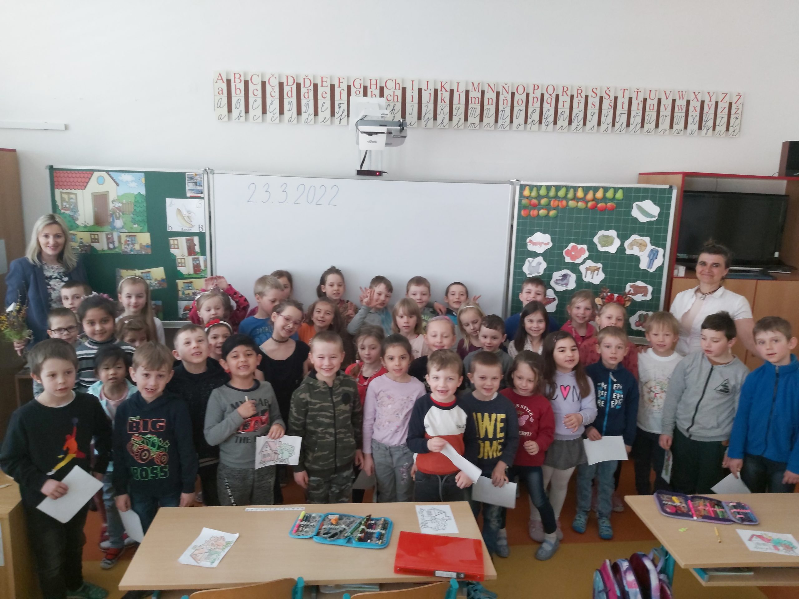 Dne 23. 3. 2022, nás v 1. A navštívila Mateřská školka Habr. Žáci 1. A se na budoucí prvňáčky náležitě připravili. Ukázali kolik toho už umí, jak dobře čtou a počítají. Potom dětem zahráli pohádku o neposlušných kůzlátkách. Nakonec se společně pustili do vybarvování obrázku. Šlo jim to báječně. Budoucím prvňáčkům přejeme hodně štěstí u zápisu.