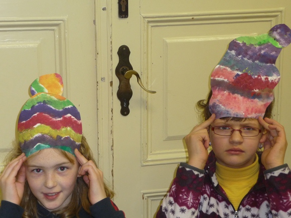 Designéři ze 4.A byli postaveni před nelehký úkol. V hodině výtvarné výchovy navrhnout co nejvíc „frikulínovou“ čepici na snowboard. (rozuměj – frikulín je ten, kdo je free, cool a in). Tady jsou výsledky jejich práce:
