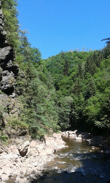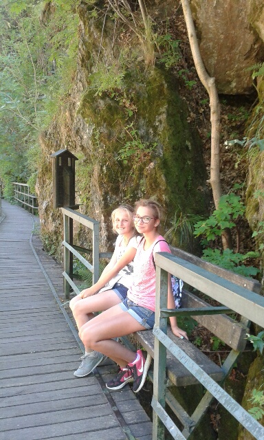 Cesta to byla po většinu času pohodová, vedla příjemným chládkem podél skal s pěknými výhledy na řeku. Utekla nám snad rychleji než Jizera v řece a na jejím konci jsme s nadšením spatřili pana řidiče a po chvilce i autobus, který nás bezpečně dovezl zpět do Hořic.