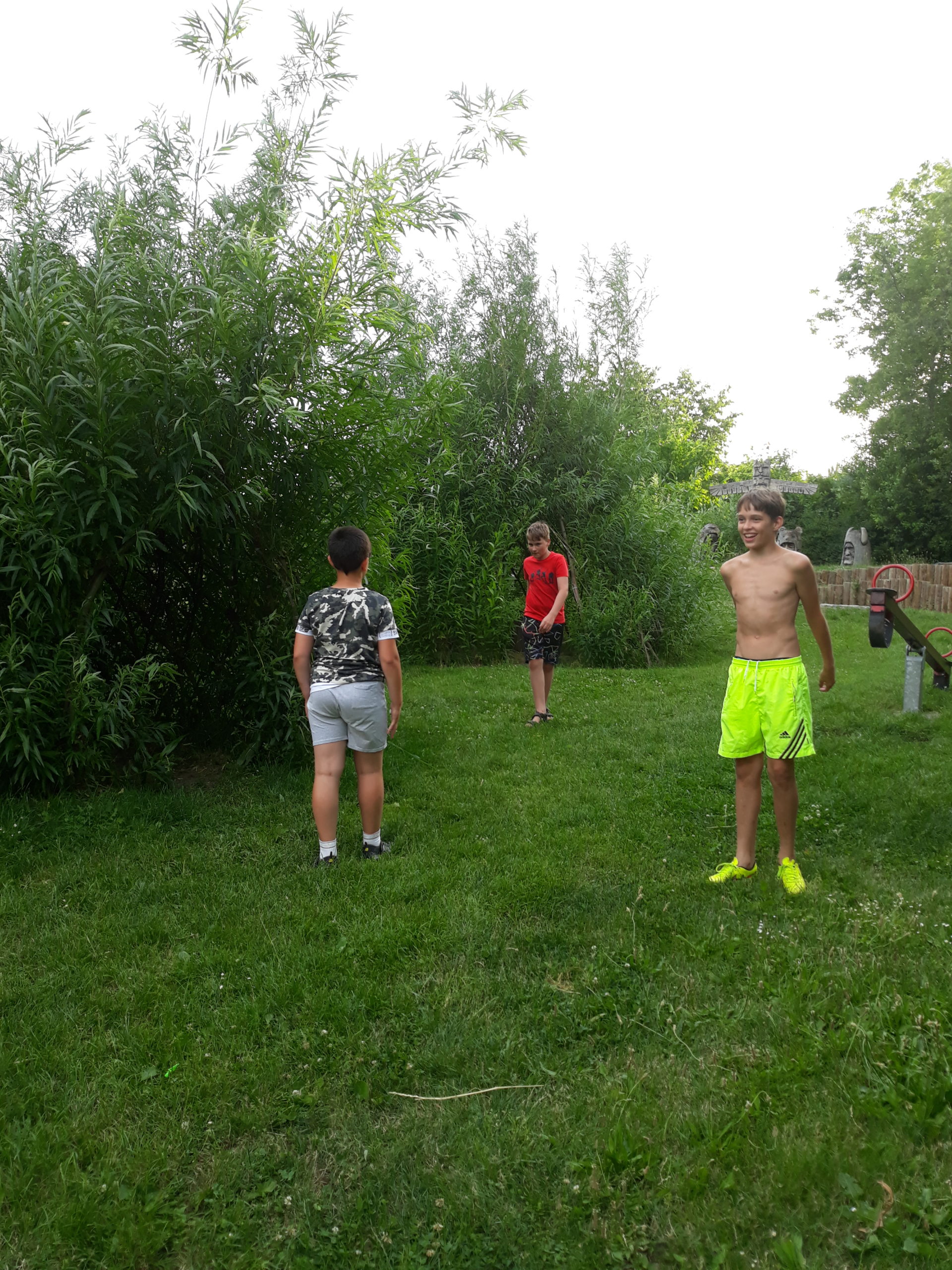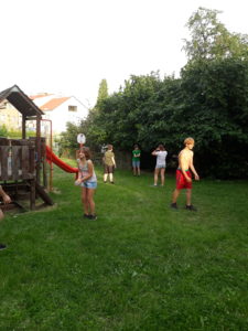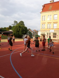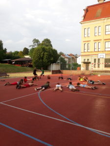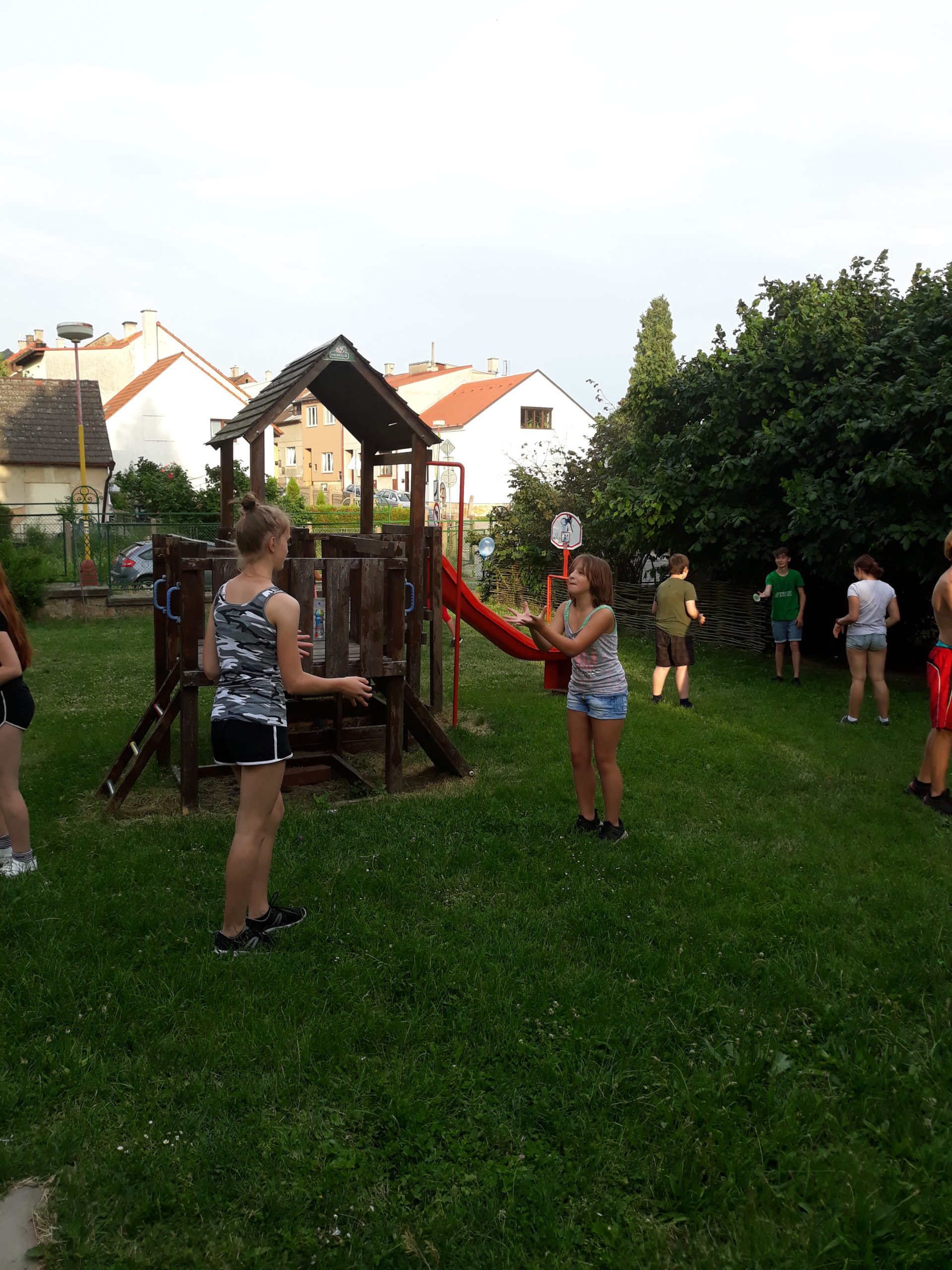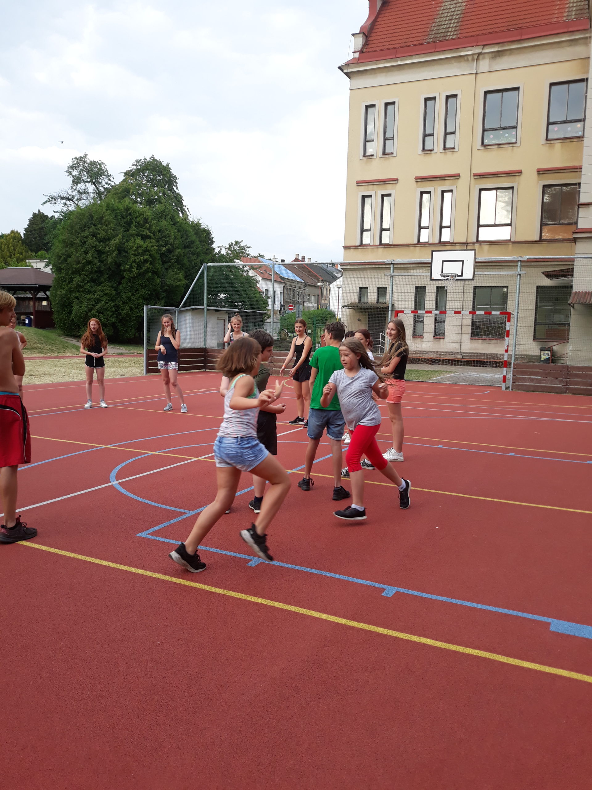 V teplém červnovém dni jsme se sešli v liduprázdné škole, užili si zábavu při sportování na školním hřišti a po večerních aktivitách jsme rozbalili spacáky a uložili se ke spánku. Ráno jsme pak doplnili energii vydatnou snídaní, za kterou děkujeme všem starostlivým maminkám.