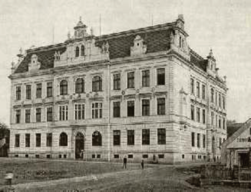 V roce 1899 navrhla Městská spořitelna finanční podporu stavbě nových školních budov. Projekt byl svěřen pražskému architektovi Josefu Lhotovi. V červenci 1899 byl plán schválen stavebním odborem okresního hejtmanství v Hradci Králové. V září téhož roku byl schválen rozpočet na stavbu obou škol a byla podána žádost o povolení výpůjčky. Náklady na stavbu školy pro západní obvod (Habr) činily 7 864 zlatých a na výkup pozemků pro obě školní budovy 16 310 zlatých. Stavba byla definitivně schválena na schůzi obecního zastupitelstva dne 1.října 1900. Pro školu západního obvodu bylo vybráno místo u Palackého náměstí. V květnu 1901 byla schválena půjčka u Zemské banky v Praze (na každou ze škol 150 000 Kč). S kopáním se začalo 14. října 1901, do 30. října byly položeny základy. Dne 11. listopadu bylo provedeno betonování dna kotelny a provedena izolace proti vnikání vody. Během zimních měsíců se nepracovalo. Zjara se ovšem stavební práce rozběhly naplno. Již 1. března 1902 bylo zahájeno osazování hladkého kamenného soklu a o čtyři dny později začaly růst cihlové zdi. Hrubá stavba pokračovala velmi rychle, a tak mohly být 12. května vztyčeny krovy. Hned nato následovaly vnitřní i vnější omítky, jež byly hotovy během července. Většinu prací prováděly místní firmy a pouze ty úkony, které nebyly v jejich silách, byly svěřeny cizím firmám. Do konce prázdnin 1902 byly všechny práce hotovy. V suterénu se nacházela kotelna na ústřední topení. Východní část školy byla určena pro dívky, jižní pro chlapce.