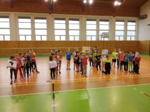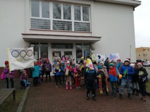 Když byly veškeré přípravy dokončeny, vyšel slavnostní olympijský průvod směrem k tělocvičně – dějišti her. Na začátku průvodu nadějných olympioniků nechyběla nezbytná pochodeň, na konci průvodu pak vlál obrovský transparent s olympijskými kruhy. Přestože v tělocvičně nebyl sníh ani led, děti se s nadšením pustily do sportovních klání. Soutěžilo se v curlingu, rychlobruslení, běhu na lyžích a biatlonu. Nutno říct, že výběr sportovního náčiní byl velmi nápaditý, a žáci se na jeho výrobě mohli také podílet. Po závěrečném vyhlášení výsledků zbyl čas i na „skok na lyžích bez lyží“ – oblíbenou disciplínu, jejíž provedení bylo oceňováno smíchem.