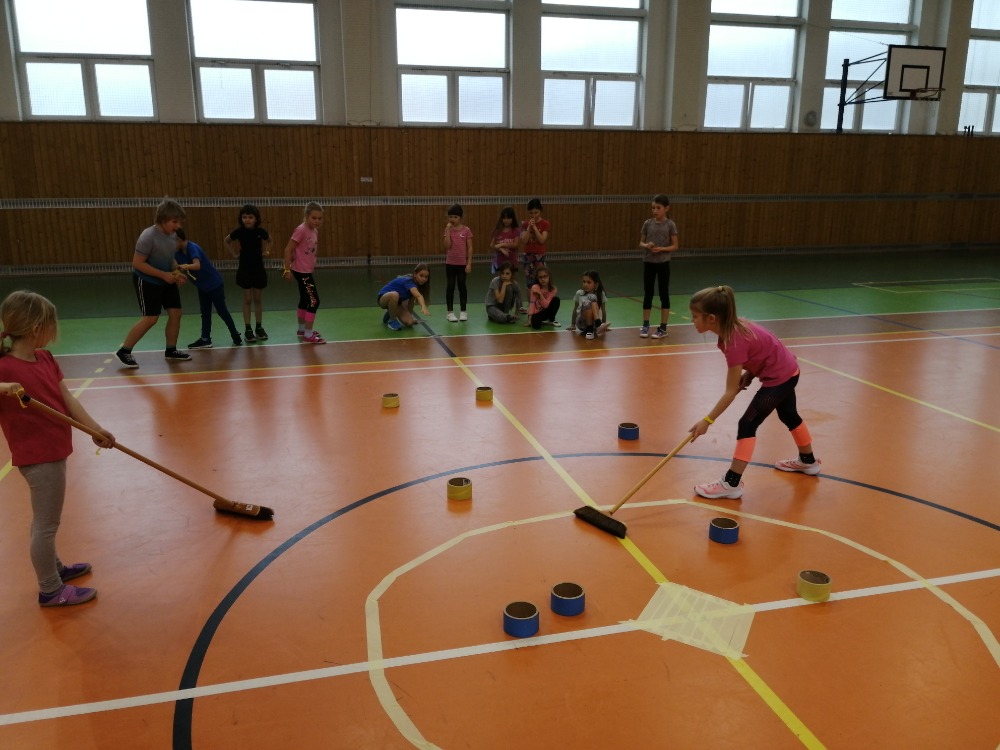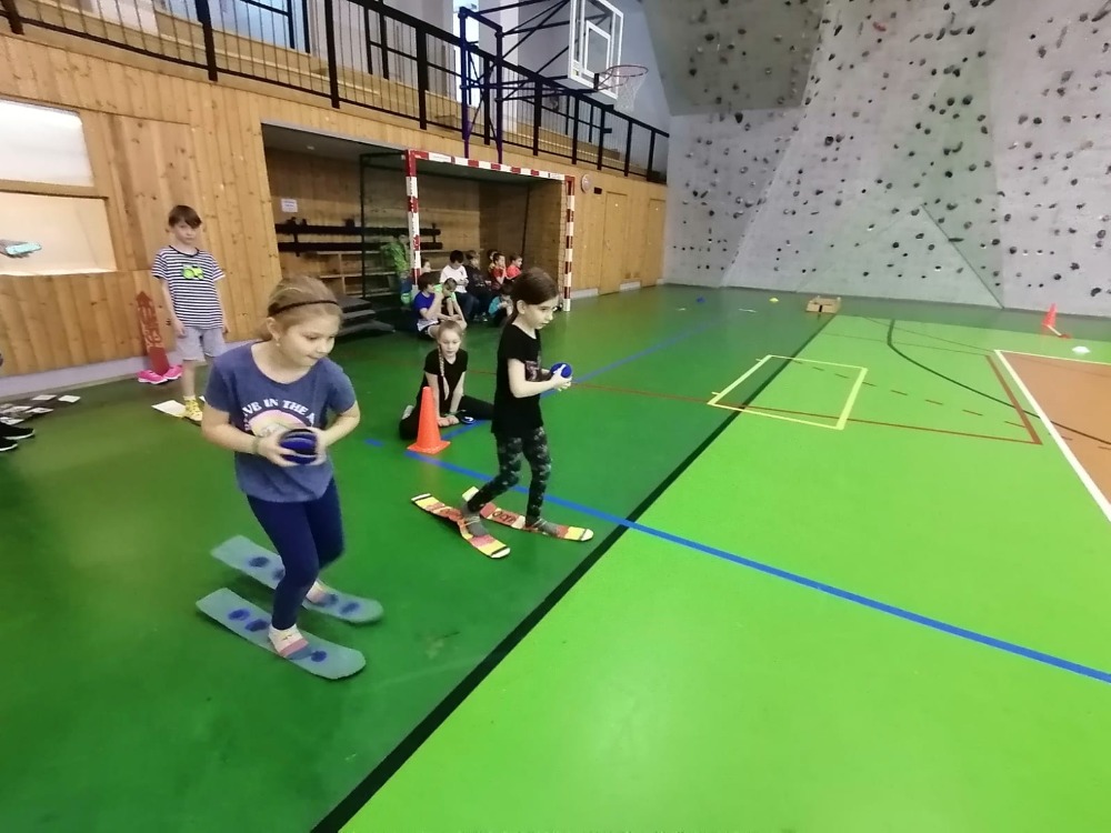 Když byly veškeré přípravy dokončeny, vyšel slavnostní olympijský průvod směrem k tělocvičně – dějišti her. Na začátku průvodu nadějných olympioniků nechyběla nezbytná pochodeň, na konci průvodu pak vlál obrovský transparent s olympijskými kruhy. Přestože v tělocvičně nebyl sníh ani led, děti se s nadšením pustily do sportovních klání. Soutěžilo se v curlingu, rychlobruslení, běhu na lyžích a biatlonu. Nutno říct, že výběr sportovního náčiní byl velmi nápaditý, a žáci se na jeho výrobě mohli také podílet. Po závěrečném vyhlášení výsledků zbyl čas i na „skok na lyžích bez lyží“ – oblíbenou disciplínu, jejíž provedení bylo oceňováno smíchem.