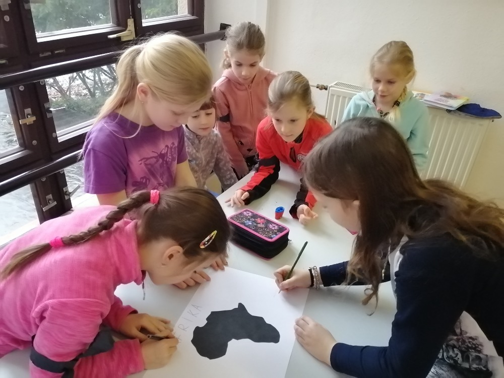 Ráno si žáci se svými průvodkyněmi povídali o vzniku olympijských her a symbolech. Mezi symboly patří olympijské kruhy, vlajka, heslo, oheň, pochodeň, hymna a emblémy. Při poslechu olympijské hymny společně všichni s úctou povstali. Poté se děti rozdělily do pěti věkově smíšených družstev podle barev olympijských kruhů. Každé družstvo reprezentovalo jeden světadíl a vyobrazilo si ho na svou vlajku.