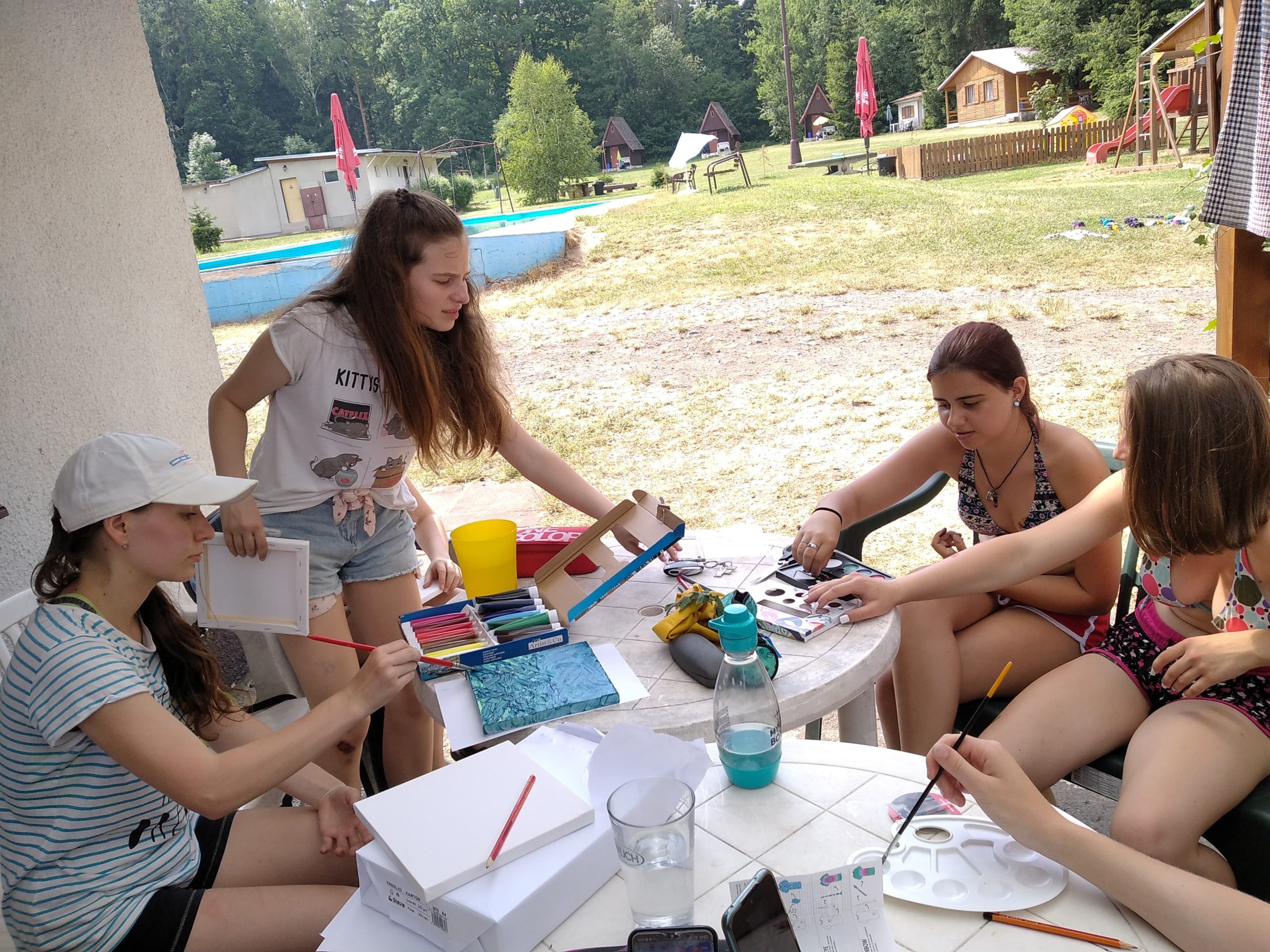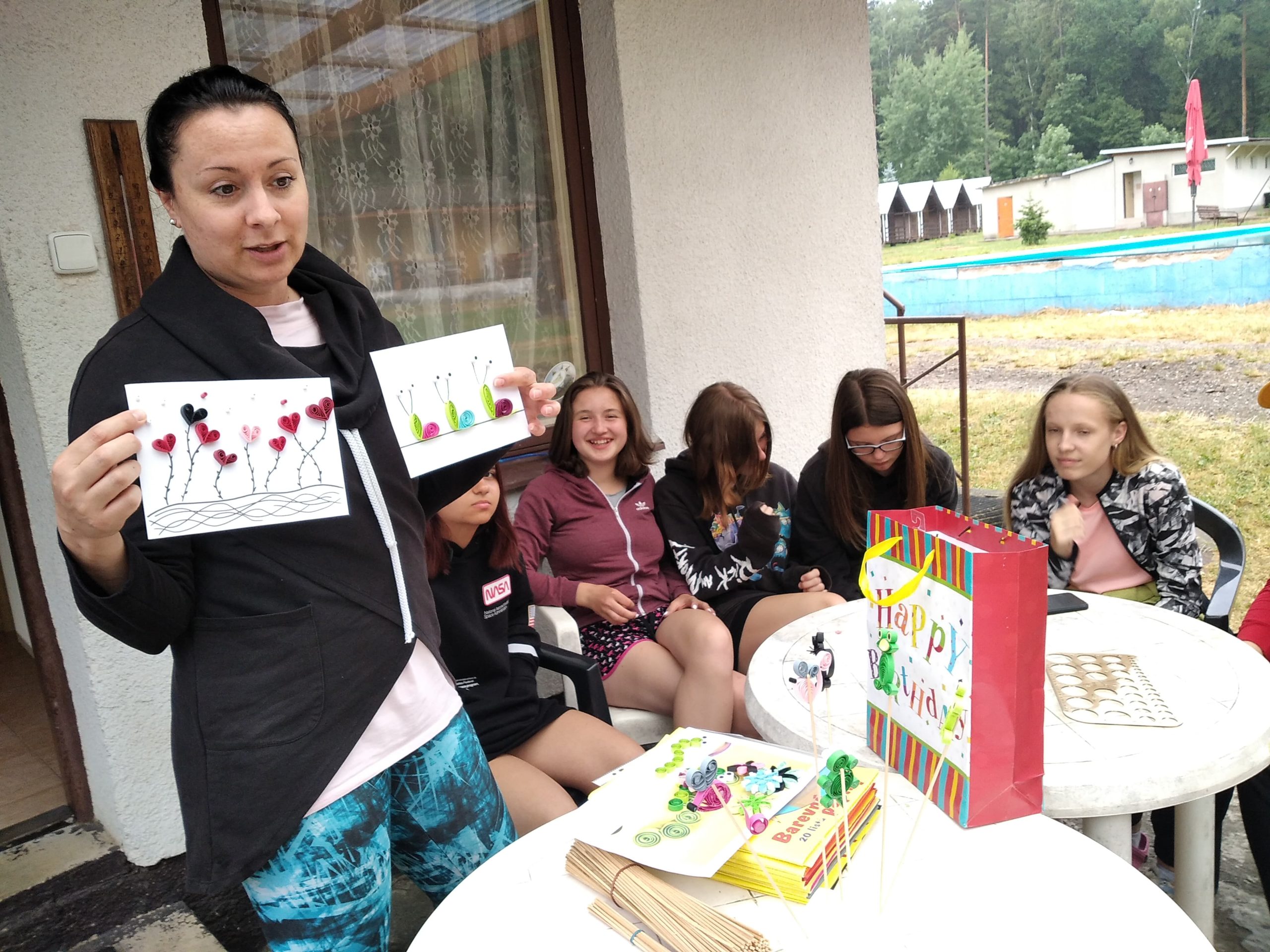 Krásný pozdrav z kempu Alegro na Dachovech posílají osmáci. Snažíme se konverzovat s Paulem ze San Francisca, utkáváme se ve sportovním turnaji, malujeme, batikujeme… Ale hlavně! Užíváme si vzácný čas s kamarády.