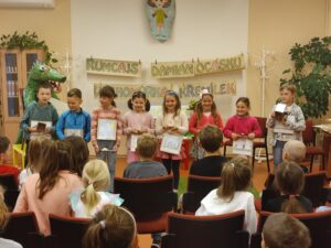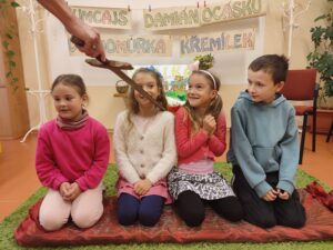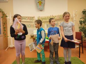 V knihovně byl připraven bohatý program plný zábavy a na oplátku všechny třídy také předvedly svá vystoupení, která si pro ostatní připravily. Slyšeli jsme nejen krásné básničky, ale i pověst.