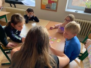 V první hře hrály děti z druhé a třetí třídy a jeden čtvrťák. Všichni byli moc šikovní, ale byla jen tři výherní místa. Velmi těsně vyhrál Dominik V. ze třetí třídy, na druhém místě skončila Beáta B. a na třetím místě Lucie B. všem moc gratulujeme