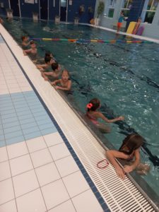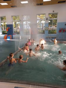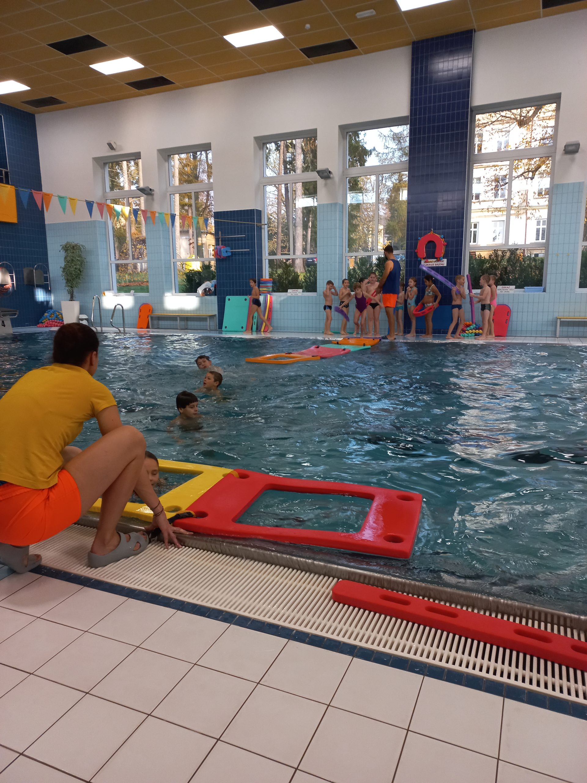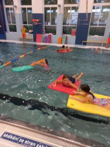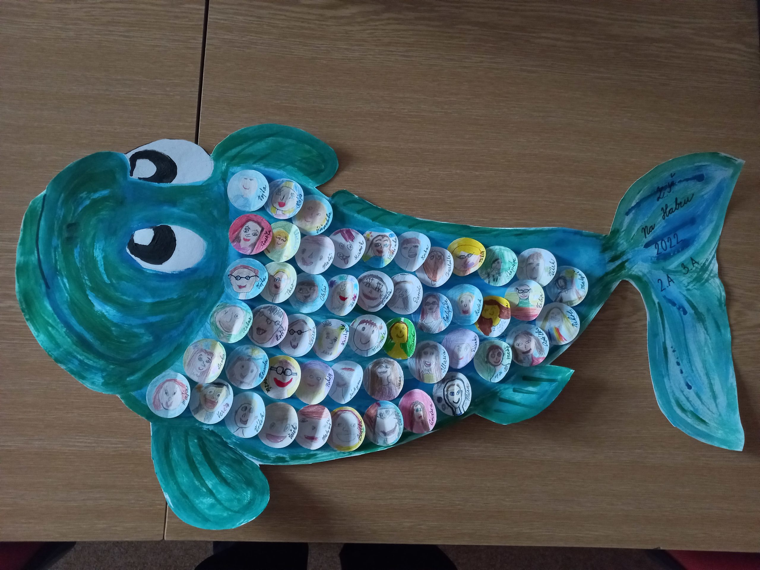 Koncem listopadu ukončila druhá a třetí třída kurz plavání. Všichni si dle svých schopností zlepšili své plavecké dovednosti, někteří si vylepšili svoji plaveckou techniku, ale určitě všichni svoji fyzickou zdatnost. Pro děti to bylo učení formou her. Veliký dík patří kolektivu instruktorů, kteří se o nás, s notnou dávkou trpělivosti, starali. Kurz jsme zakončili zábavnou hodinou, kde nechyběla vodní skluzavka, vodní chodníček, potápění a skoky do vody. Děti dostaly mokré vysvědčení a diplomy ze závodů. Na rozloučenou děti vyrobily rybu pokrytou šupinami z dětských portrétů. Ještě jednou děkujeme a těšíme se na shledanou.