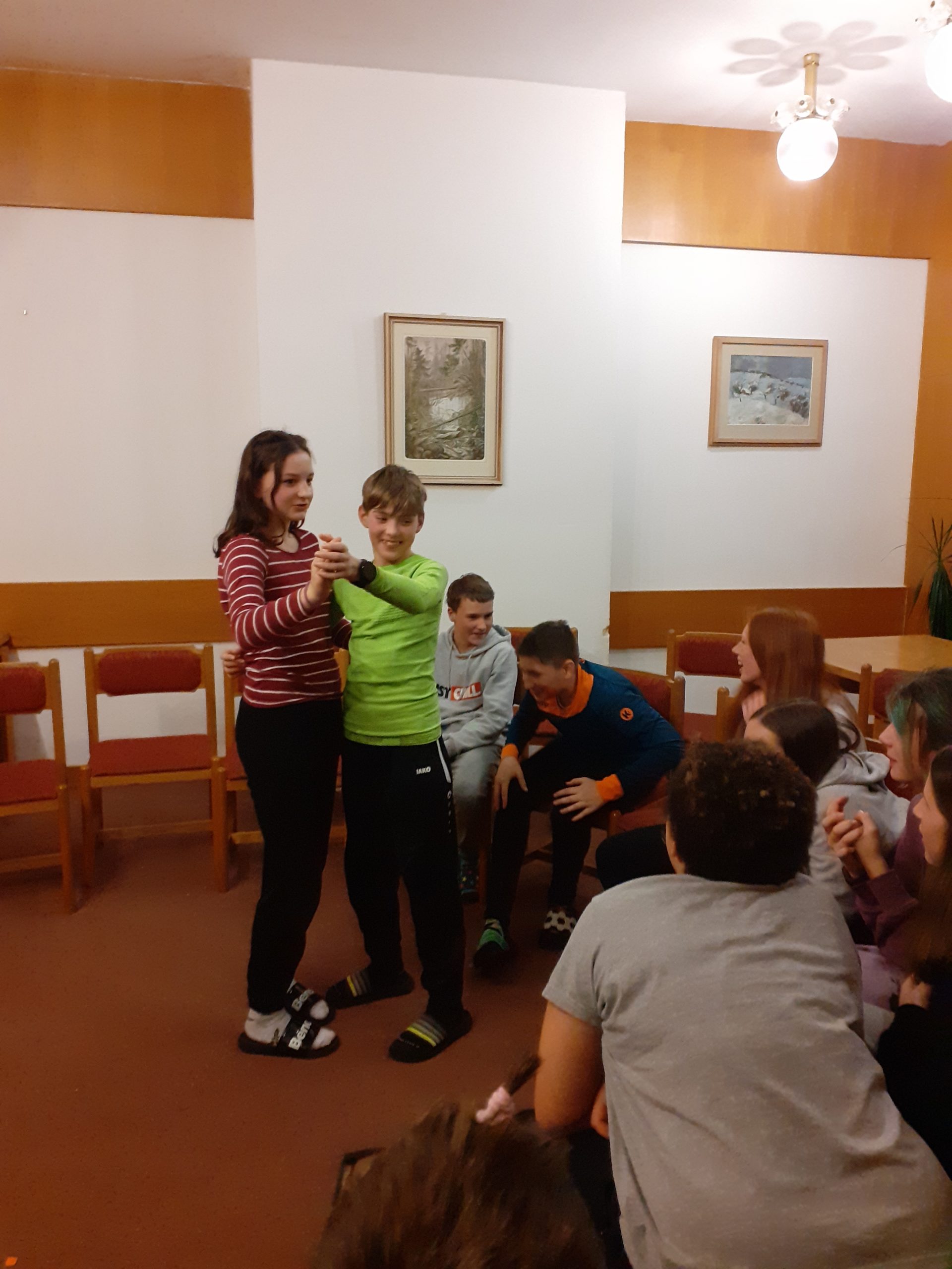 Též večerní program byl přínosný a přitom veselý. Naši lyžaři se dozvěděli základní informace o technických parametrech běžkařských i sjezdových lyží, zásadách jejich výběru a mazání. Na „Andule“ si pak všichni vyzkoušeli poskytnutí první pomoci. Z řady her se té největší oblibě dočkala hra „Pepíčku pípni“.