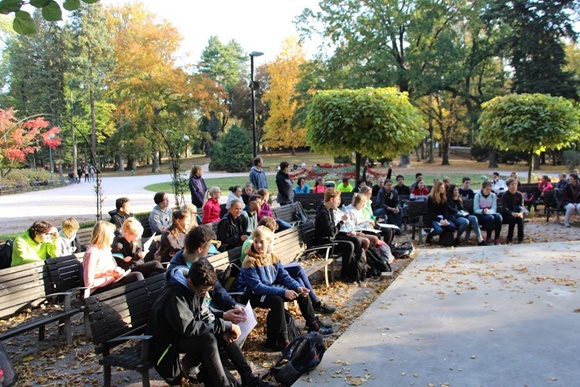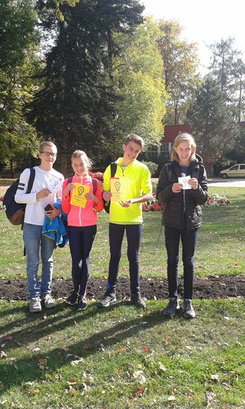 Účastníci loňského matematického orienťáku jistě nemohou zapomenout na sychravé a velmi chladné počasí doplněné vydatným deštěm, které nás v předešlém ročníku soutěže provázelo. Letos ale bylo všechno jinak! A tak se čtveřice žáků z 8.A (Kuba, Verča, Petr a Tonda) vydala v pondělí 15. října do prosluněného Hradce Králové, kde se v Jiráskových sadech konal další ročník matematického orienťáku neboli Mator 2018. Ptáte se, co to vlastně je?