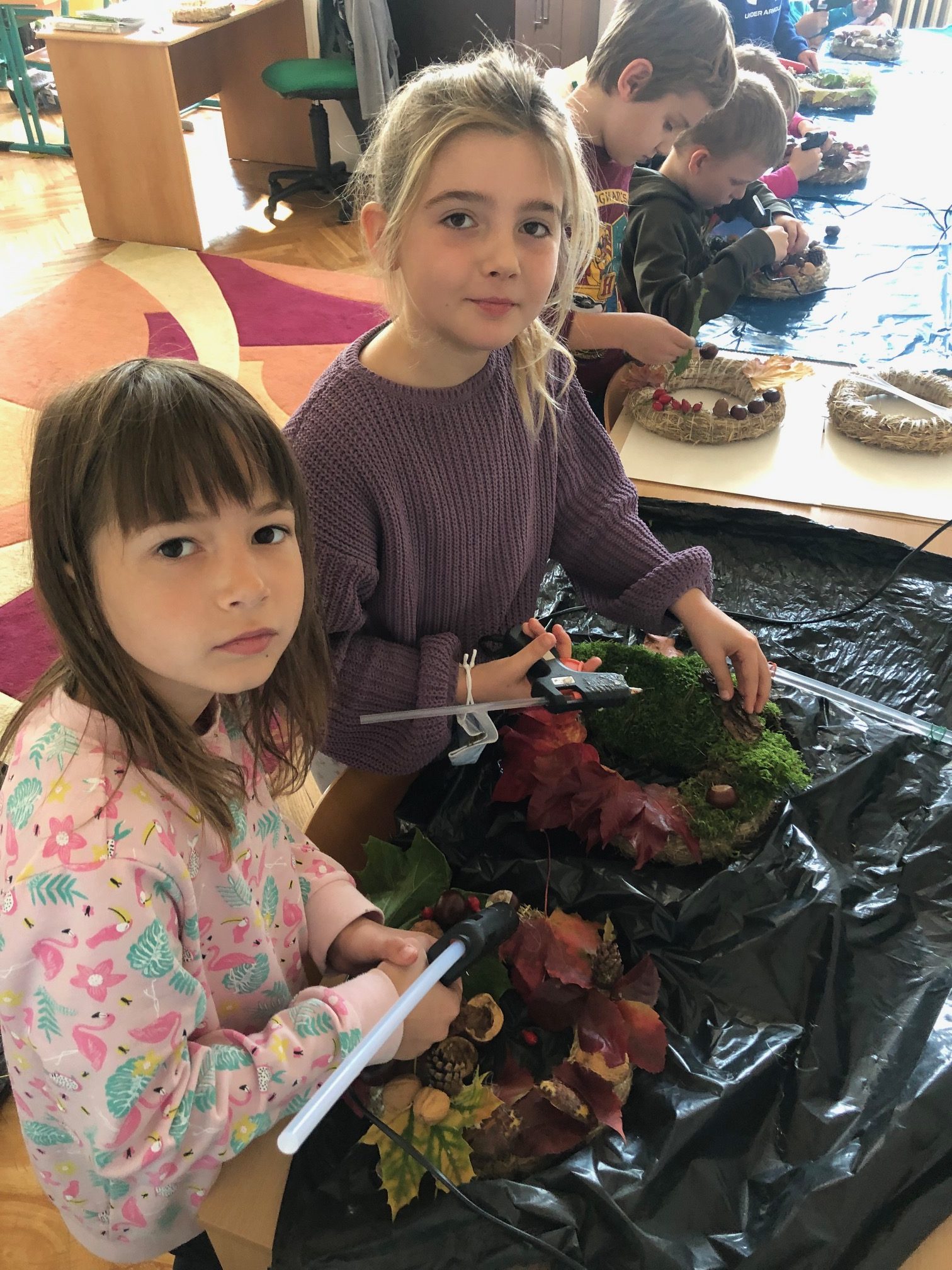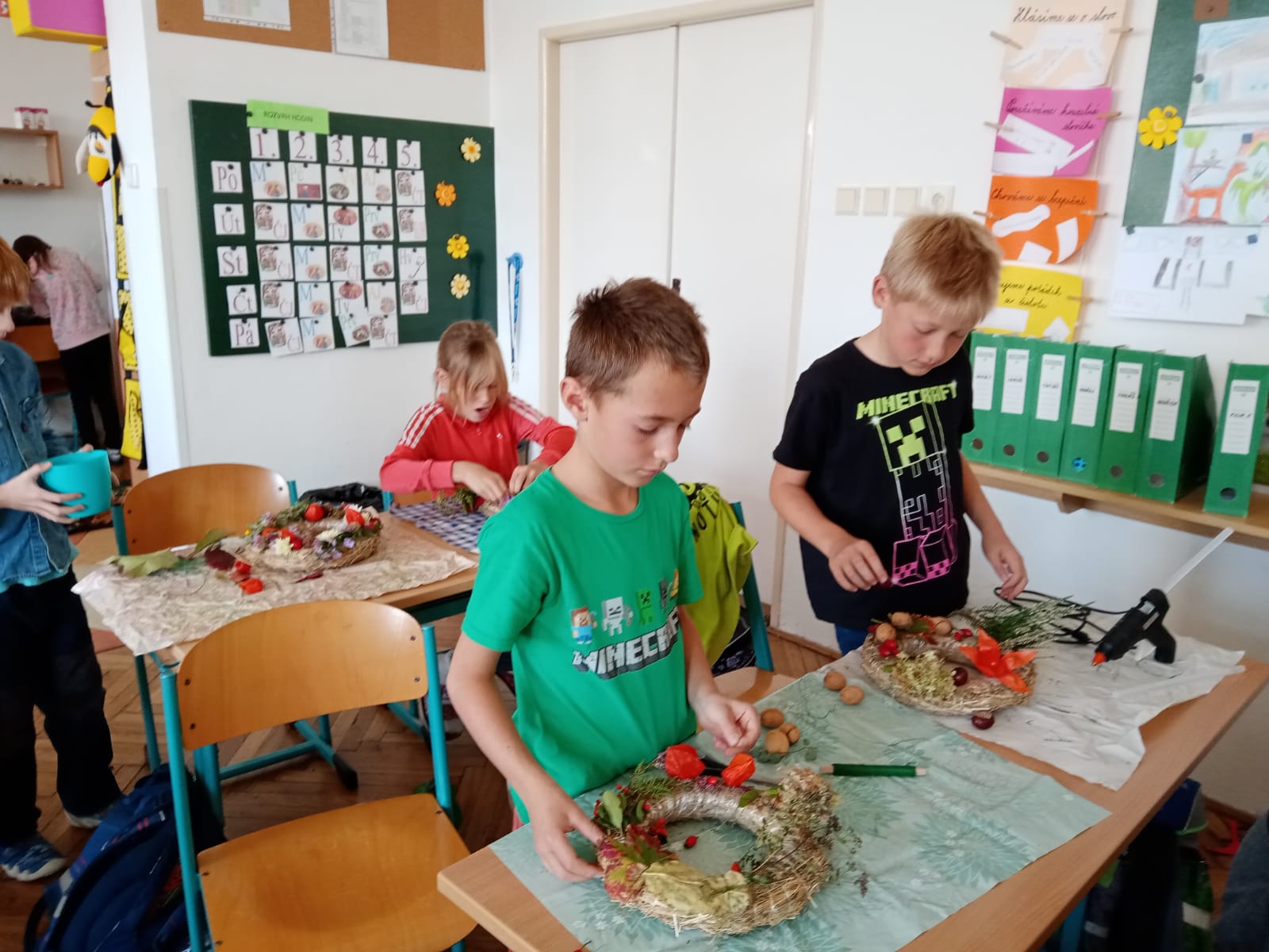 Vyrobili jsme si krásné podzimní věnce – každý podle své fantazie.¨ Práce to byla složitá, ale moc nás to bavilo! Nakonec jsme si složili i vlastní podzimní básničku….