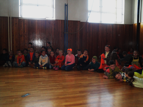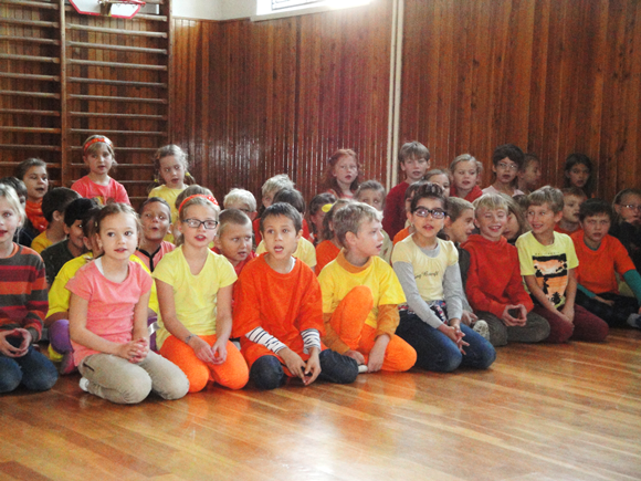 Ráno na začátku vyučování se opět sešly děti z první, druhé a třetí třídy v tělocvičně. Zde si společně zazpívaly několik písniček a svým pěkně barevným oblečením přivítaly podzim.